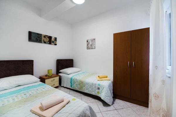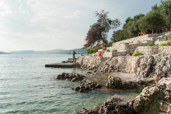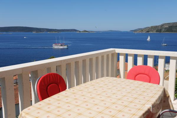 Tout ce que je recommande cet établissement. La plage est à proximité de la plage n'est pas bondée et isolée. Pour les magasins à bas prix aussi - pas loin. Le propriétaire de l'arrivée conseillé sur les endroits où manger et acheter. Il parle bien l'anglais donc il n'y a aucun problème avec les espaces publics des installations propres et bien rangé presque neuf et vaisselle et pots de bonne qualité. Belle vue depuis le balcon qui à ce jour, je ne peux pas oublier. Près de la belle Trogir qui vaut le détour plus d'une fois surtout la nuit. Sortir de l'île, il ya un problème que certains écrivent, d'autant plus que certains savent les environs et découvrir la route inconnue utilisée par les indigènes. Calme et très occupé dans la soirée à l'extérieur des cigales n'ont pas de bruit. Globalement, je recommanderais cet endroit et l'hébergement. Pour tout ce qui doit être déçu.