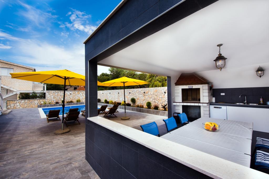 La piscine a été construite en 2020 et est chauffée à une température de 26°C. L'appartement 4+2 sera équipé d'une nouvelle cuisine en 2024. Les photos seront disponibles en mai 2024. En raison des installations communes (barbecue, cuisine extérieure et piscine), nous n'accueillons pas de grands groupes (pas plus de deux appartements par groupe).