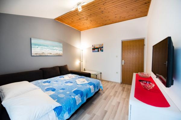 Belle vue, appartement soigné avec toutes les commodités nécessaires, hôtes sympathiques toujours à votre service. La mer est à cinq minutes à pied et le seul problème est qu’il n’ya pas d’ombre sur la plage, mais il y a une autre plage un peu plus loin qui a assez d’ombre. La période où nous étions extrêmement calmes et nous étions vraiment sur les bonnes vacances, loin du bruit et du stress.