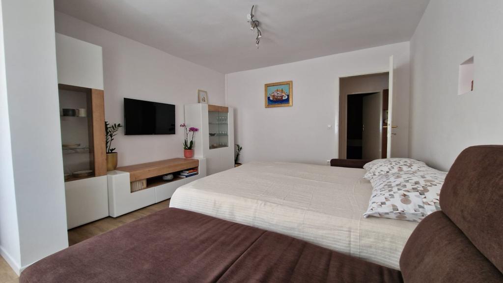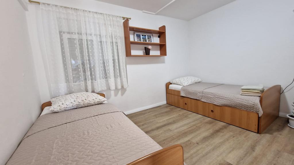 L'appartement Jerčić se situe au 1er étage d'une maison privée. Entièrement meublé et confortable, il se trouve dans un quartier calme d'Omiš, à seulement 10 minutes à pied d'une magnifique plage de sable fin, idéale pour les enfants. L'appartement comprend 3 chambres séparées, une cuisine entièrement équipée, une salle de bains, des toilettes séparées et un balcon. Il peut accueillir jusqu'à 6 personnes, avec 2 lits d'appoint. Un parking privé gratuit pour 2 voitures est disponible devant l'appartement. Idéal pour une famille avec enfants ou un groupe d'amis, cet appartement est parfait pour un séjour agréable. Nous restons à votre disposition et vous offrons une boisson de bienvenue. Le prix de l'appartement inclut la taxe de séjour, le Wi-Fi gratuit et le parking. L'utilisation de la climatisation (en option) est facturée 5 euros par jour. Nous serons ravis de vous accueillir et restons à votre disposition pour toute question ou assistance. Au plaisir de vous recevoir ! La famille Jerčić