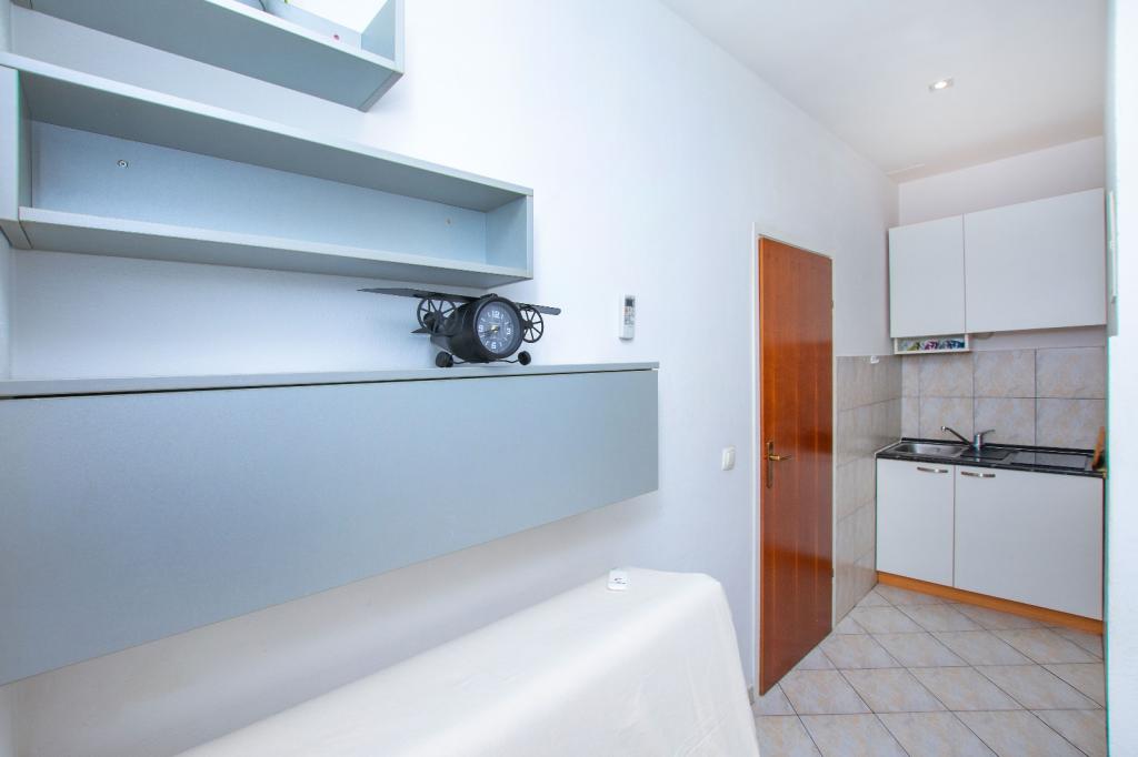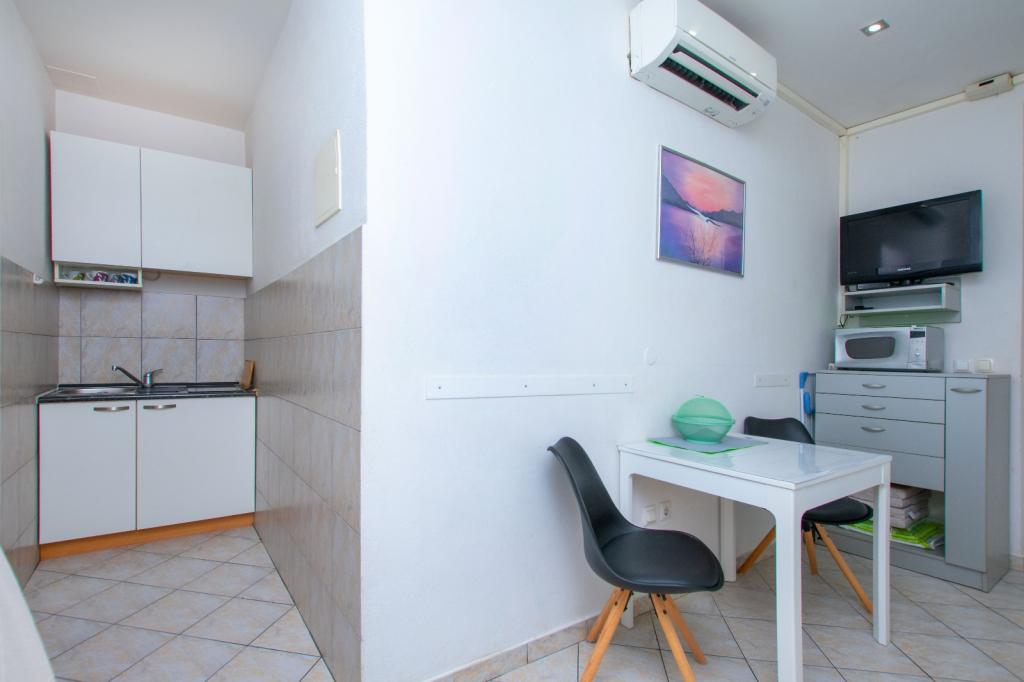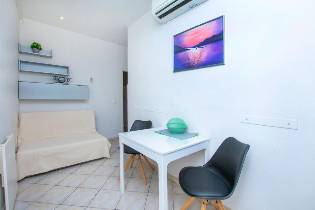 L'appartement « Piccolo » est situé à Omiš, à 5 minutes de la vieille ville et à environ 5-7 minutes à pied de la plage de sable (Velika plaža). D'une superficie totale de 25 m², il se compose d'un séjour avec coin repas et cuisine, d'une chambre séparée, d'une salle de bains avec douche et lave-linge. L'appartement climatisé dispose d'une terrasse et d'une connexion internet gratuite. La cuisine entièrement équipée comprend un micro-ondes, un réfrigérateur, des plaques de cuisson, une cafetière, une bouilloire et de la vaisselle. Situé dans un immeuble résidentiel, il possède une entrée indépendante par l'escalier situé au sud du bâtiment. Un parking gratuit est mis à la disposition des clients. Couchage : 1 lit double (160 x 210 cm) + canapé-lit. À proximité de l'appartement, vous pourrez pratiquer la tyrolienne, le rafting sur la rivière Cetina, des excursions en bateau vers les îles voisines, le kayak, l'escalade, la randonnée et profiter des magnifiques promenades côtières. L'appartement est situé dans un environnement calme et dispose d'un espace de travail sécurisé et d'une connexion internet haut débit. Capacité d'accueil : 2 personnes.