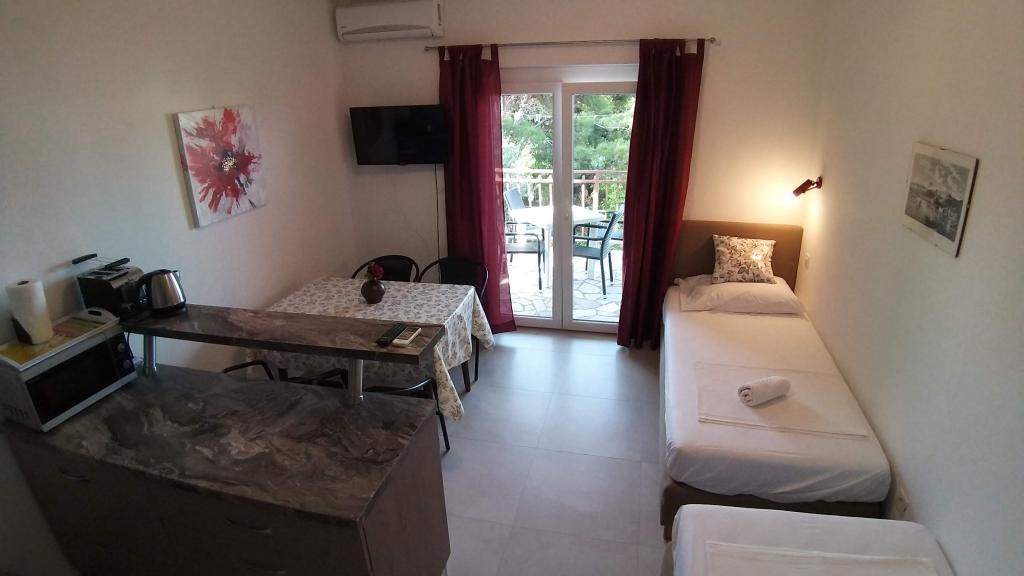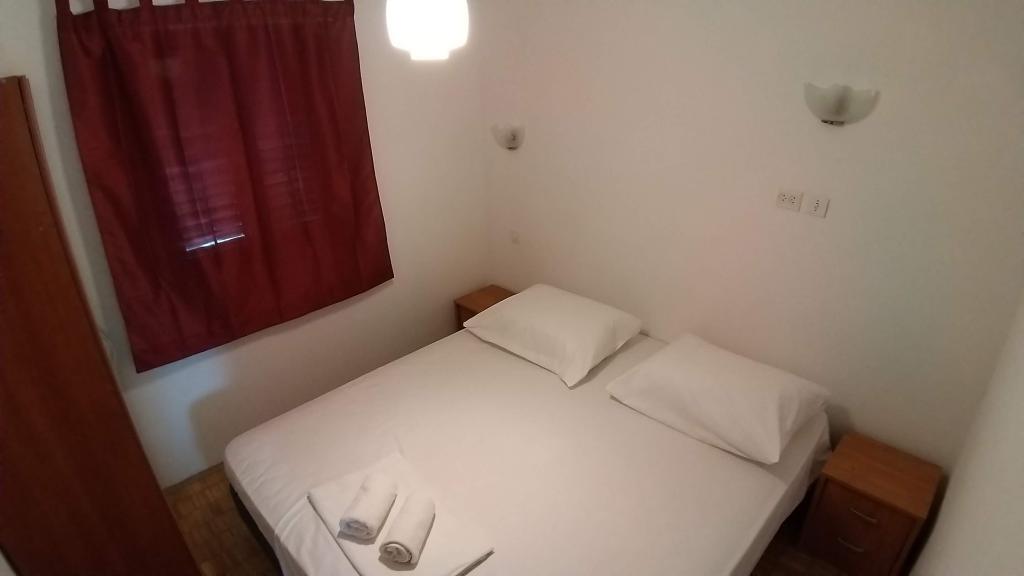 En savoir plus Unités d'hébergementArrivée à 14h00, départ à 10h00 ; MINIMUM 5 nuits. Enregistrement anticipé à partir de 9h00/départ tardif jusqu'à 17h00 (si possible) 30 EUR Le dépôt de réservation de 25 % n'est pas remboursable. Paiement : en espèces, HRK, EUR lors de l'enregistrement pour tous les jours convenus. Le prix comprend : Une place de parking par appartement (pour plus, envoyez une demande), la climatisation (usage équitable), les frais, taxes et taxe de séjour, le Wi-Fi. Le grill est sur le parking à l'usage de 3 appartements 1 jeu de draps et 4 serviettes pour 7 nuits inclus dans le prix vaisselle : 3 casseroles, poêle, 6 verres, 6 tasses, ouvre-bouteilles, planches à découper, couverts lave-vaisselle, micro-ondes , grille-pain, bouilloire