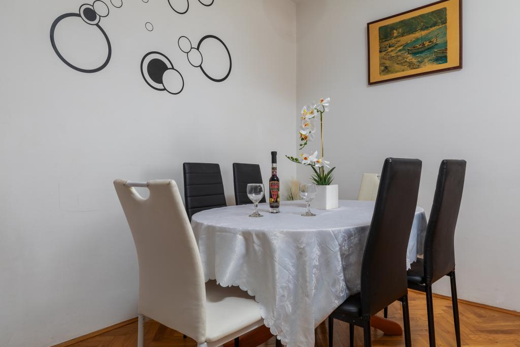 L'appartement A5 est situé à Omiš, au 13 rue Četvrt ribnjak, à proximité de la plage et du centre-ville. Il comprend deux chambres, une cuisine, une salle de bains, un salon et une terrasse. L'appartement A7+1 est également situé à Omiš, au 13 rue Četvrt ribnjak. Spacieux et offrant une vue sur la rivière Cetina, la mer et la vieille ville d'Omiš, cet appartement est idéal pour les familles nombreuses ou les groupes d'amis. Il peut accueillir jusqu'à 7 personnes et comprend 4 chambres, 2 salles de bains modernes avec douches, une cuisine entièrement équipée et un salon spacieux et confortable. Tout est facilement accessible : commerces, pharmacies, médecins, salles de sport, la nouvelle promenade reliant Omiš à Dugi Rat, la vieille ville d'Omiš et sa gastronomie variée proposant des spécialités locales, ainsi que des activités de rafting et de tyrolienne pour les plus aventureux. Ce logement possède un charme particulier grâce à son balcon offrant une magnifique vue panoramique sur la rivière Cetina, la mer Adriatique, la forteresse Fortica et toute la ville d'Omiš - un endroit parfait pour prendre un café le matin ou se détendre en soirée.