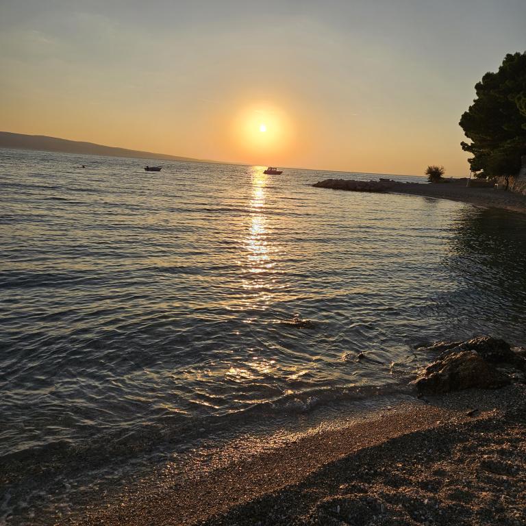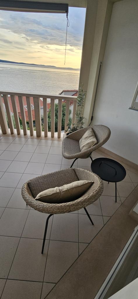 Nous nous sommes immédiatement sentis très à l'aise dans cet appartement. Une belle terrasse avec vue sur la mer et suffisamment d'ombre - par exemple pour un petit-déjeuner copieux un peu plus tard dans les températures élevées du mois d'août. L'appartement était moderne et largement équipé et correspondait entièrement à la description. Vous pourriez découvrir et utiliser de nombreux détails agréables. Il faisait encore agréablement frais à l'intérieur pendant la journée, même sans l'utilisation de la climatisation, et il était très bien placé pour dormir. Un escalier - pas très court - mène à la plage, d'où l'on a une belle vue sur les premiers spots de baignade au sommet. Un petit supermarché et 3 restaurants se trouvent à proximité ; et surtout Omis avec toutes ses possibilités sont également facilement accessibles à pied. Un merci spécial aux propriétaires sympathiques et hospitaliers Ruzica et Boris !