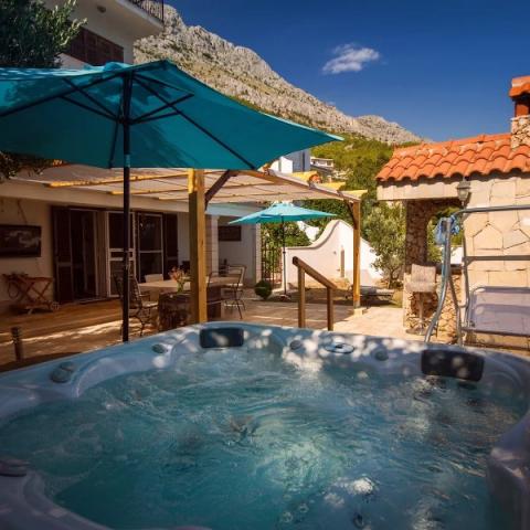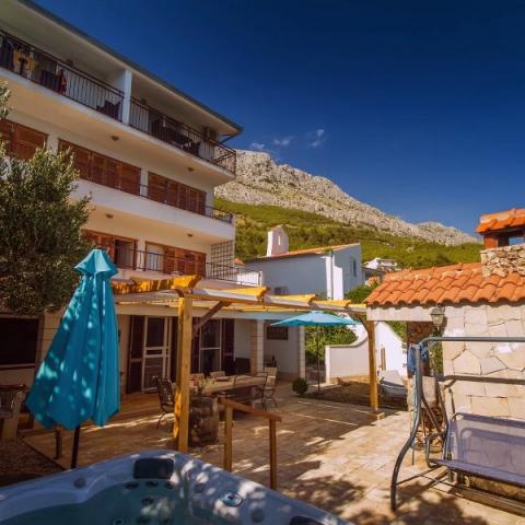 - Boisson de bienvenue - Jacuzzi pour l'appartement 7+1. Eau toujours chaude et propre. - Wi-Fi gratuit - Chaises longues - TV, max-tv, satellite et radio (extérieur et intérieur) - Climatisation - Ventilateurs - Chauffage - Douche extérieure, 2x - Sèche-cheveux - Fer à repasser - Machine à expresso et à café filtre - Chauffe-eau - Micro-ondes - Draps, serviettes, torchons de cuisine - Lit bébé - Chaise haute - Trampolines, poids - pour A7 - Aspirateur - Barbecue et table en pierre pour chaque appartement - Machine à laver et vaisselle - Organisation d'excursions (tyrolienne, rafting sur la rivière Cetina, randonnées, excursions en bateau sur la mer et la rivière Cetina...) - Villes à proximité : Omiš, Split, Trogir, Šibenik, Zadar, NP Krka cascades, Makarska, Dubrovnik, Međugorje - Bars de plage avec boissons, nourriture - Sports nautiques - 7 plages reliées par une promenade - Certaines plages ont de l'ombre naturelle - Passage sous la route menant à la plage - Parking gratuit à côté de l'établissement - ANIMAUX ACCEPTÉS - PLAGE POUR CHIENS - Idéal pour promener les animaux - Tri écologique des déchets - Produits de nettoyage