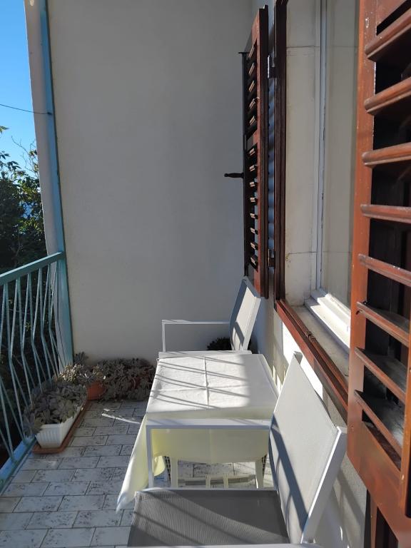 Les appartements sont situés au premier étage de l'immeuble et chacun dispose d'un balcon avec une belle vue sur la mer. La plage la plus proche est à 100 mètres de la maison. Il se trouve à 10 minutes à pied du centre. Un parking est disponible sur place.