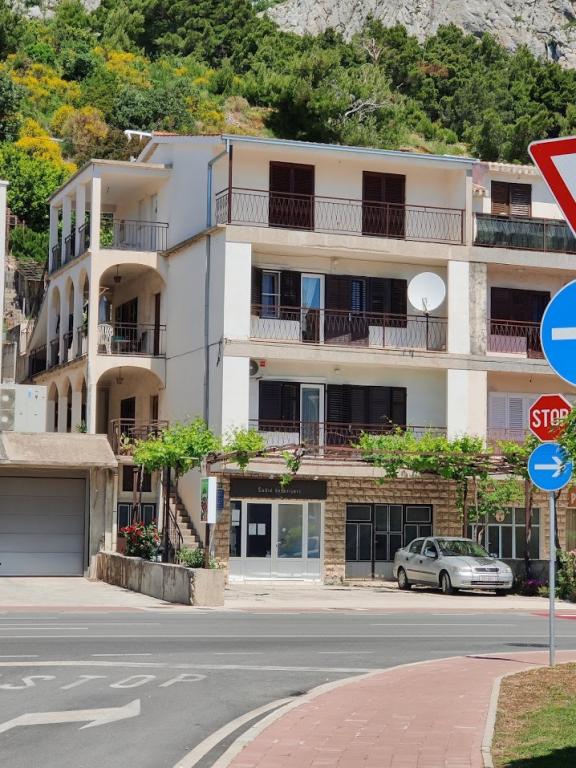 La maison est située à l'entrée de Omis de Split. En face de la maison est située dans un centre commercial Studenac, auto camp mouette offre de nombreuses installations sportives et récréatives, et le thème Dino Park et le parc d'attractions pour petits et grands. La plage est à 200 mètres et le centre d'Omis 800m (10 minutes à pied).
