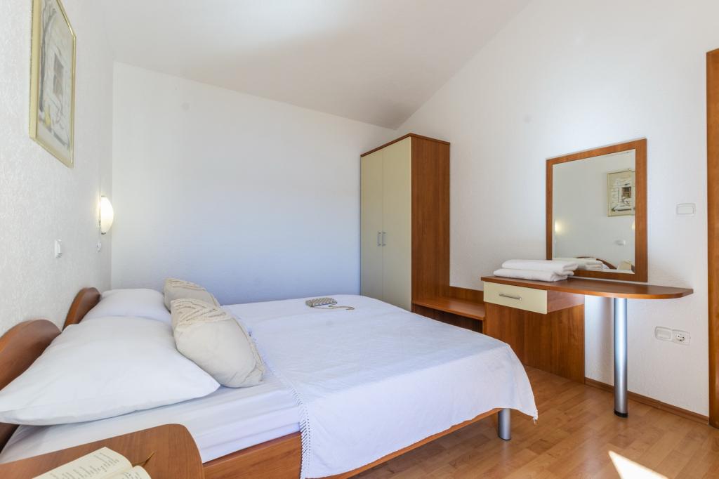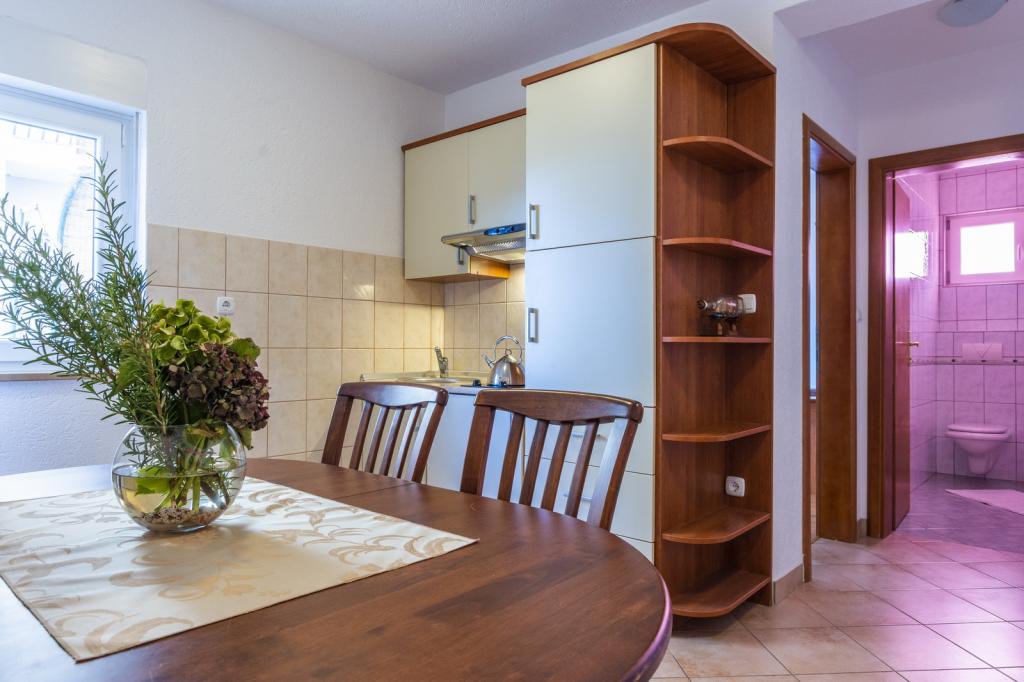 Je recommande vivement cet appartement à cause des gens qui l'engage. Ils sont très accueillants et de la famille, vous pouvez sentir là comme à la maison ;-). La maison est très propre et équipée avec tout ce dont vous avez besoin. L'appartement dispose de deux grandes chambres, une grande cuisine et une salle de bains. Tout cela est très pratique. La piscine est suffisant et vous pouvez l'utiliser 24 / h. La vue depuis le balcon de la piscine est la belle mer et l'île. Un peu lourd va à la plage après une pente raide et rocheux .especially dur à température +35 degrés en Août. Le quartier est calme et un peu plus bas dans les magasins. Il n'y a que deux magasins où vous pouvez acheter quelque chose à manger et vous devez marcher environ 1km pour eux. De même avec les restaurants. Si vous avez une voiture, vous pouvez explorer beaucoup de merveilleux endroits comme Omis, Split, Trogir, Sibenik et très proche de la Bosnie-Herzégovine. Je recommande vivement cet appartement et les propriétaires.