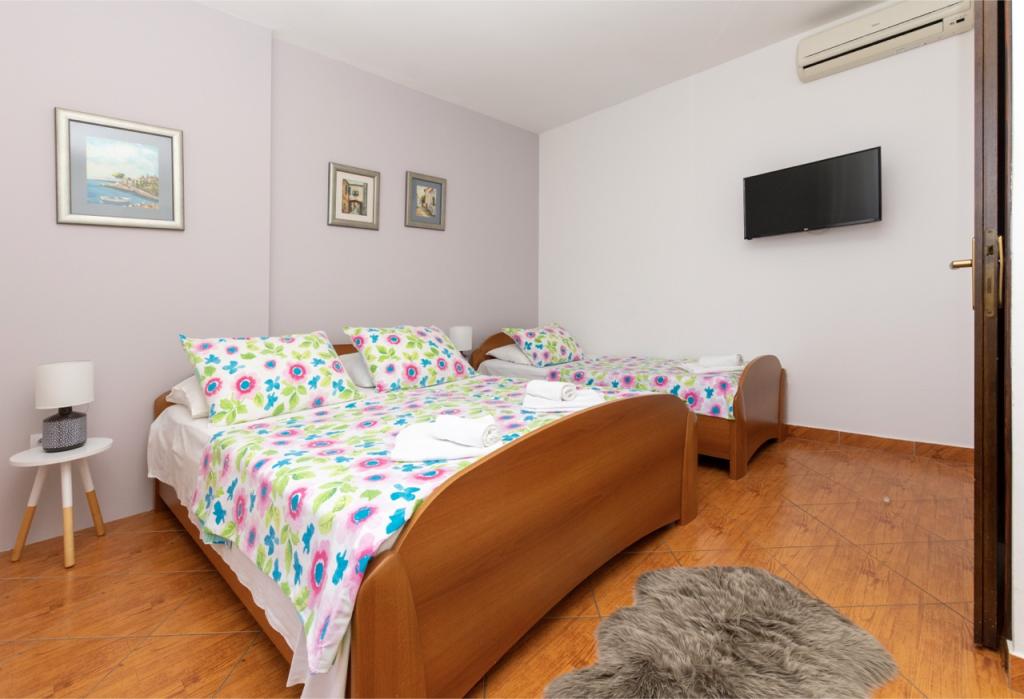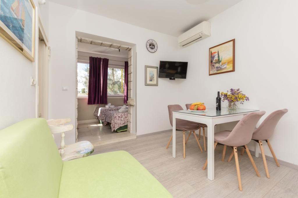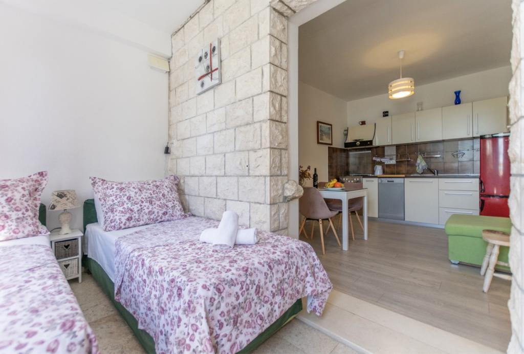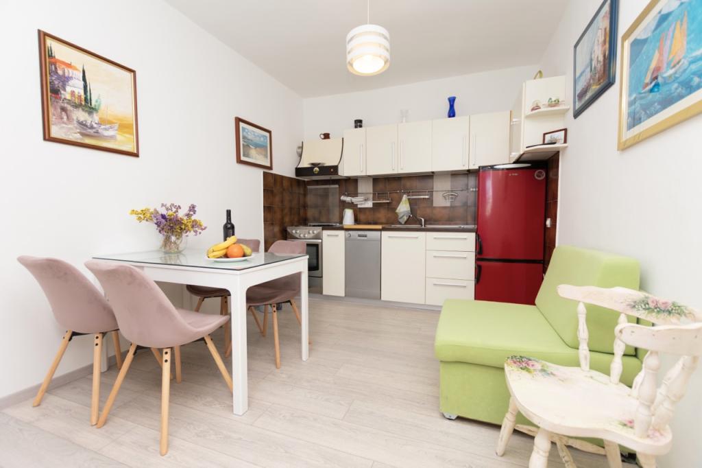 La maison est située à proximité immédiate du centre d'Omiš, à environ 100 mètres, avec une belle vue sur la mer. À quelques minutes à pied de la plage de sable et du centre-ville, où vous trouverez de nombreux restaurants, boutiques et bars, la maison est construite en vieilles pierres dalmates dans un style traditionnel. La maison dispose de six appartements attrayants, chacun disposant d'une terrasse spacieuse avec une belle vue sur la mer et les îles.
