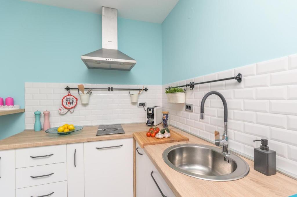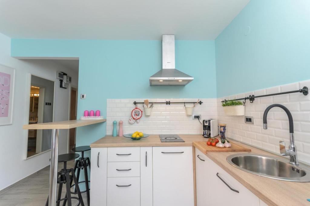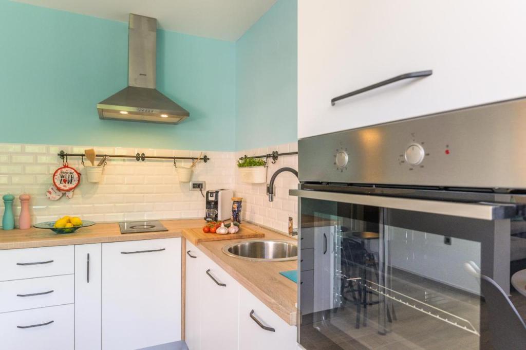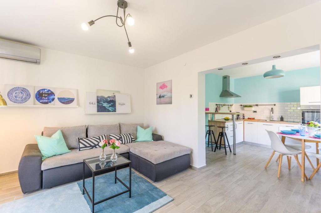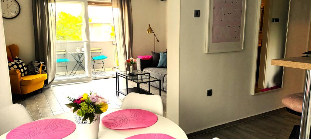 Appartement moderne nouvellement décoré, ambiance extrêmement agréable, salle de bain luxueusement décorée, chambre confortable avec un lit double pour 2 personnes, nouvelle cuisine entièrement équipée, salon spacieux avec un canapé-lit luxueux pouvant accueillir 2 personnes. TV 160 cm /netflix, internet haut débit, Situé dans un quartier calme d'Opatija, à 800 mètres de la mer et du centre d'Opatija, à 70 m du centre commercial Spaar (10 minutes à pied).