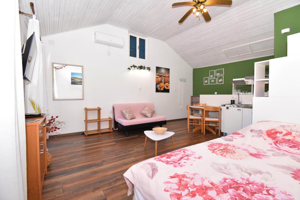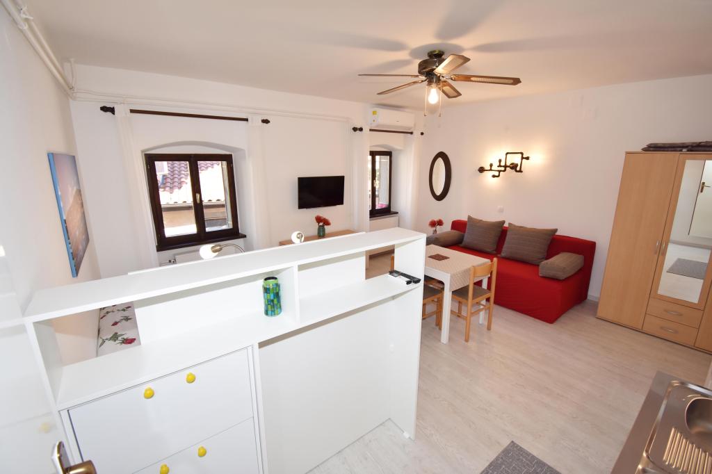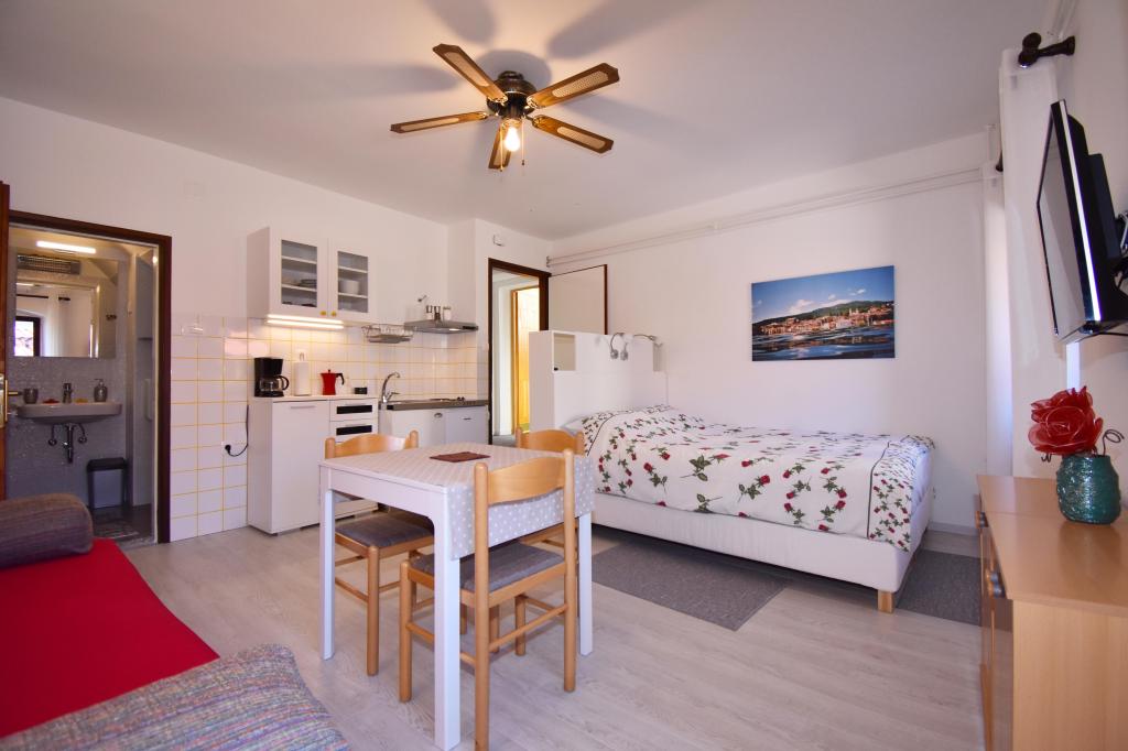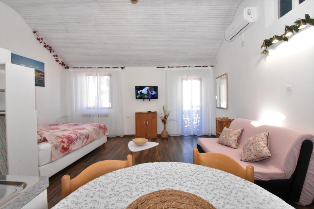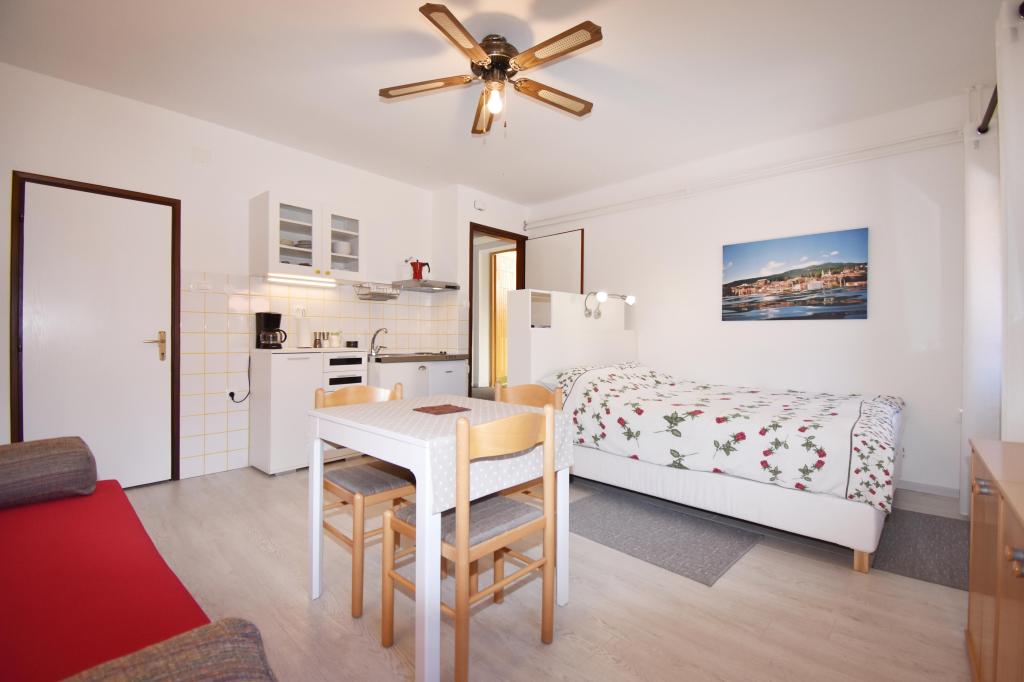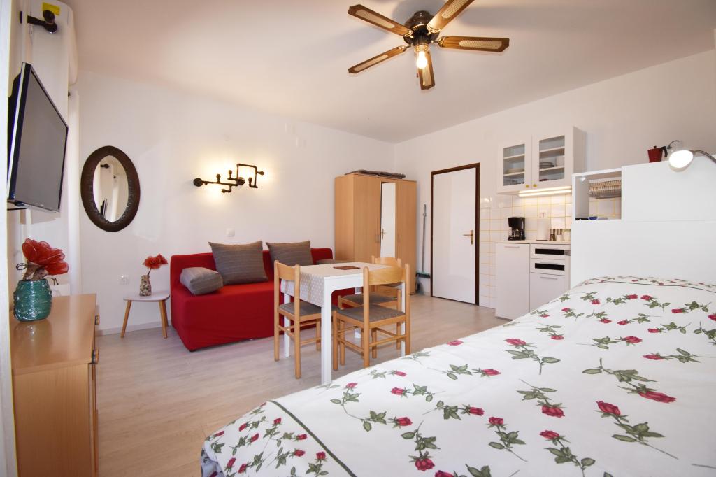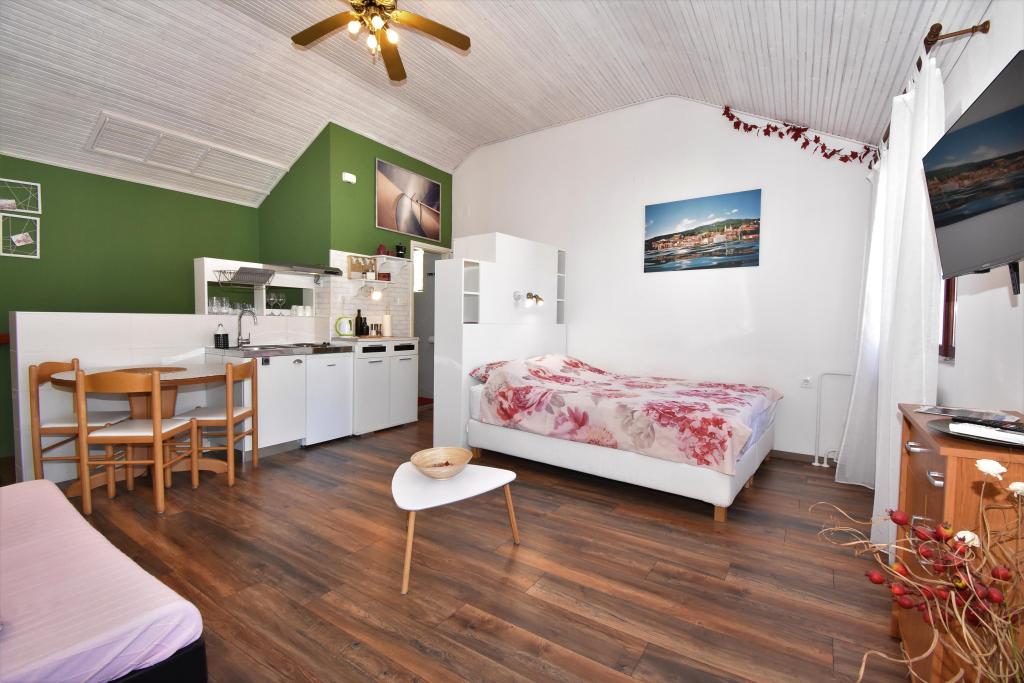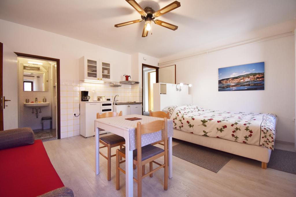 Deux studios, chacun avec un lit double et un lit d'appoint, sont situés à Volosko, un quartier calme d'Opatija, un ancien village de pêcheurs. Ils ne sont qu'à 50 m de la mer. Dans leurs environs immédiats se trouvent des épiceries et plusieurs des meilleurs restaurants de la Riviera d'Opatija ! Studio+1 ID:2710 se compose d'une chambre avec un lit double et un lit d'appoint (un canapé-lit), une kitchenette - partie de la chambre, une salle de bain (douche/WC) et un balcon avec vue sur la mer. Le Studio+1 ID:2711 a tout ce que le Studio+1 ID:2710 a à l'exception du balcon et de la vue sur la mer. Au lieu d'un balcon, le Studio Apartment 2 dispose d'une sortie sur la terrasse (sans vue sur la mer).
