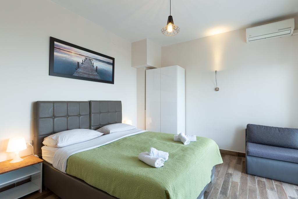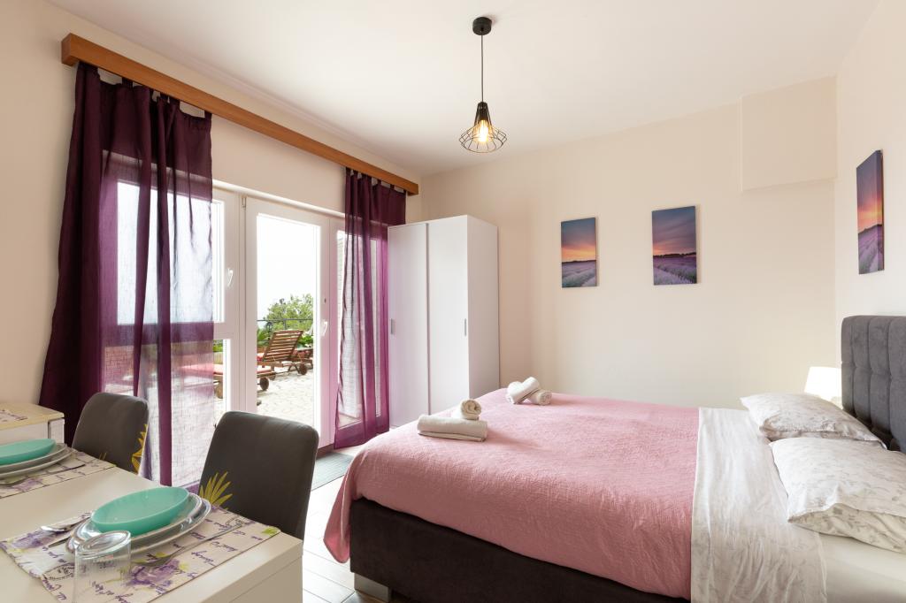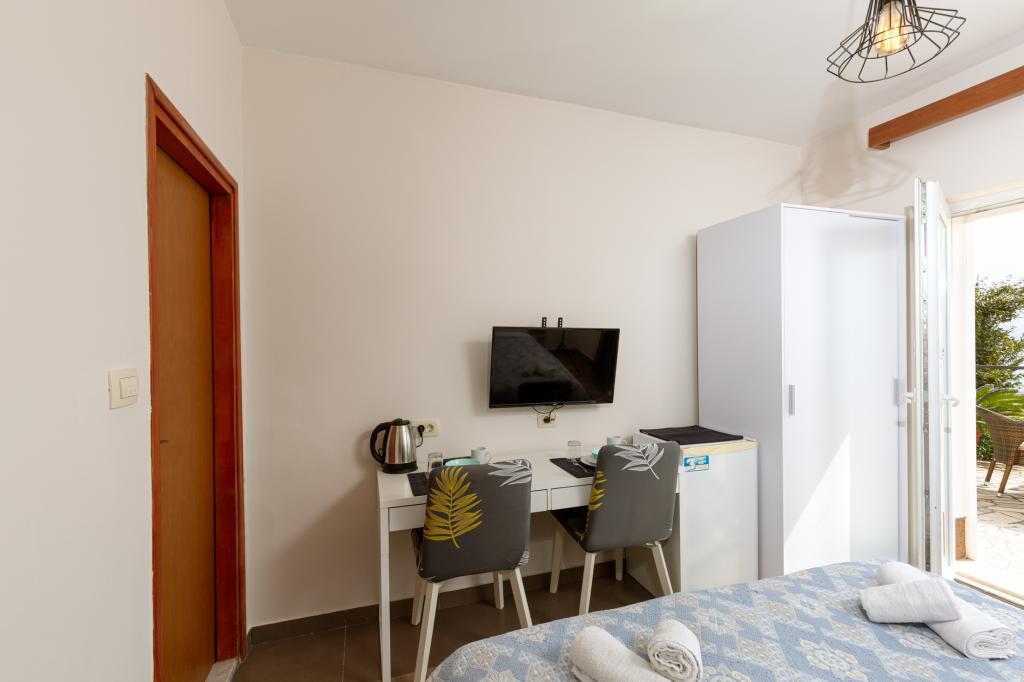 Studio avec vue mer et accès à la grande terrasse pour des moments très relaxants. Très propre et équipé de toutes les commodités nécessaires pour quelques nuits. Je recommande vivement !!!