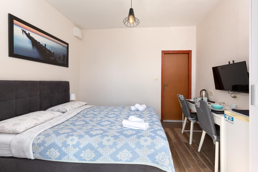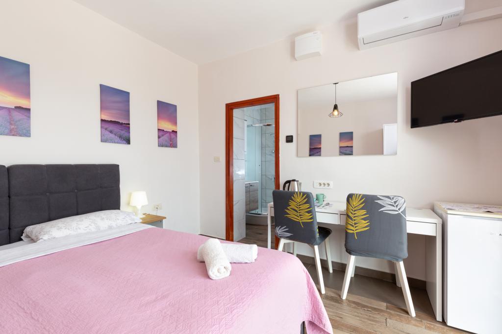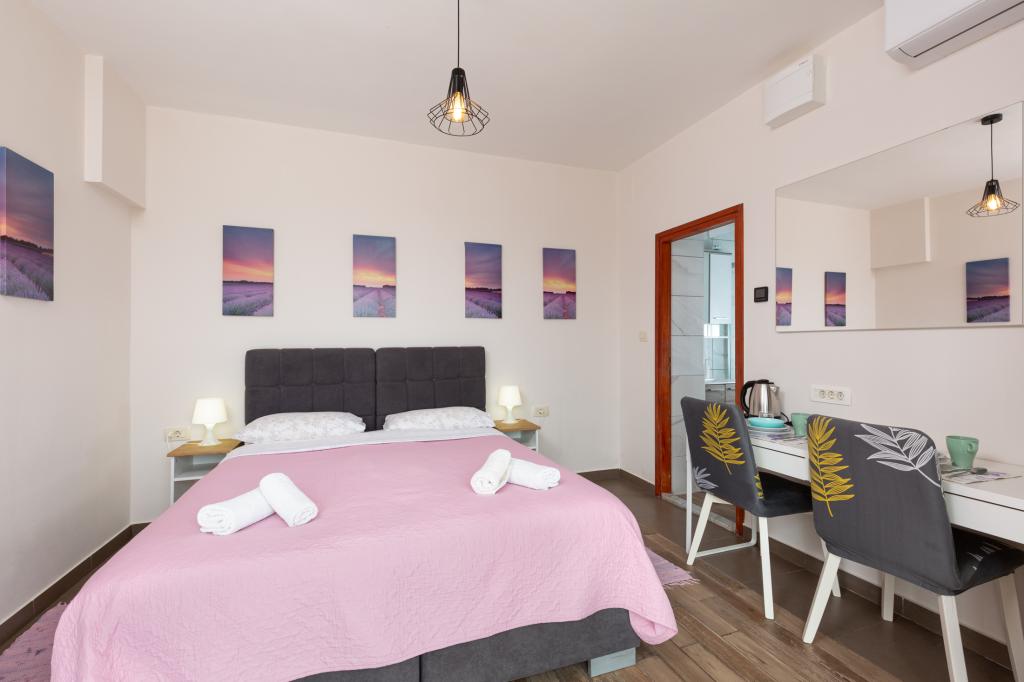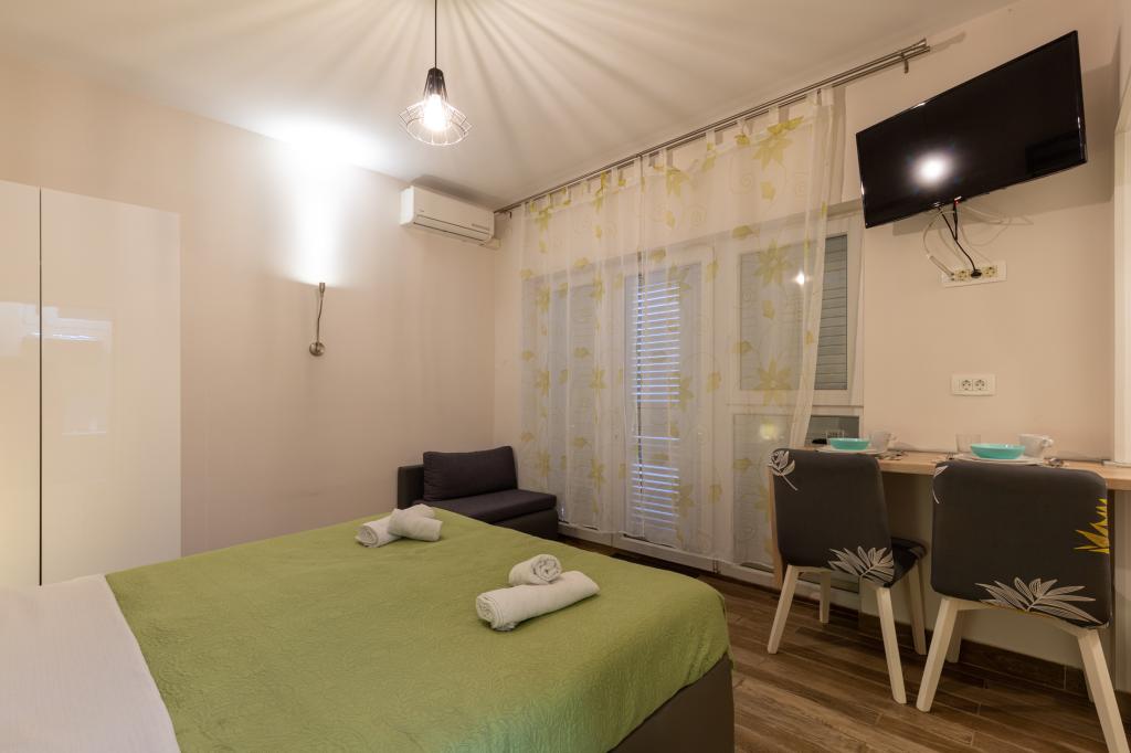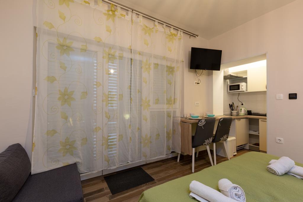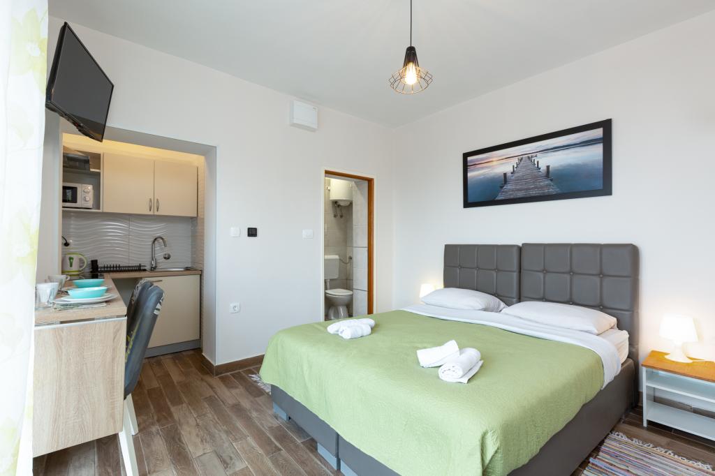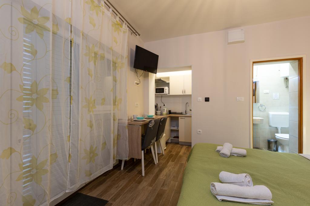 En savoir plus Unités d'hébergementHeure de départ : 08:00-10:30 Heure d'arrivée : 15:00-24:00 Paiement : espèces Nous n'acceptons pas les animaux de compagnie. La troisième personne dans le studio + 1 et la cinquième personne dans A3 + 2 sont facturées 8 EUR supplémentaires par nuit. Nous offrons des réductions pour les séjours plus longs !