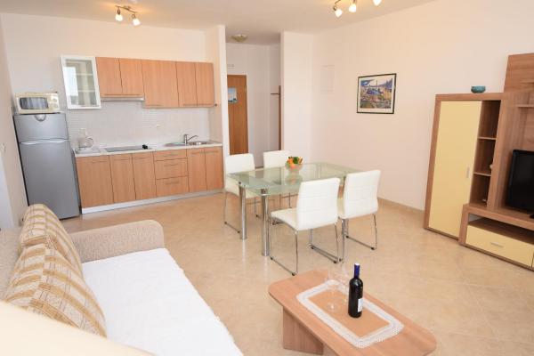 Les deux appartements sont situés très près de la mer, la plage est à seulement 20 mètres, à côté de la mer, grande terrasse avec chaises longues, vue sur le canal. Très proche des restaurants et du centre ville. Les deux appartements ont leurs tables sur le balcon.