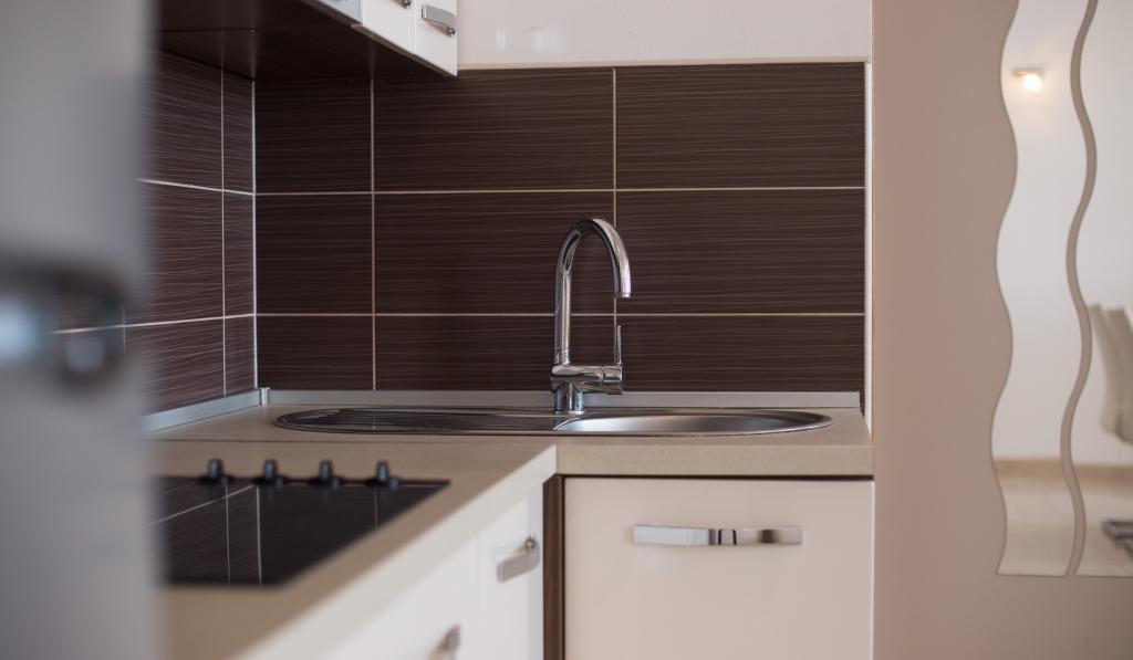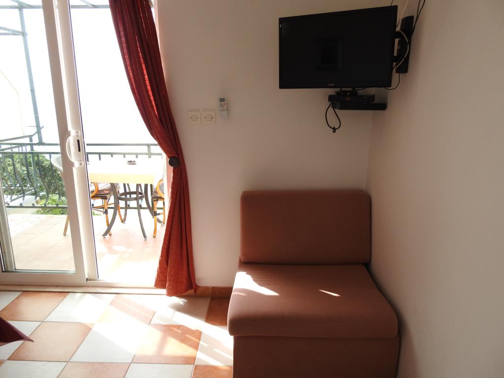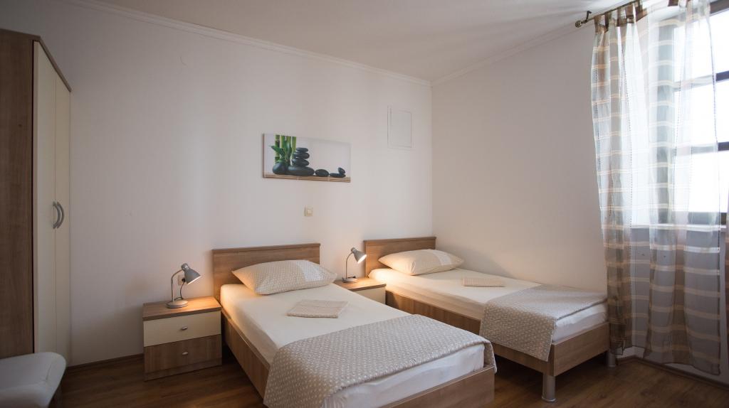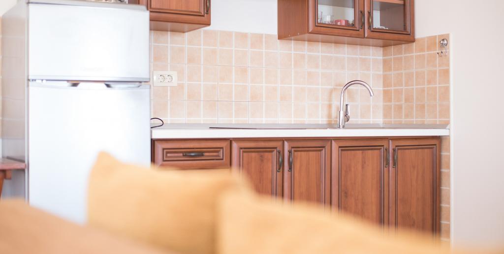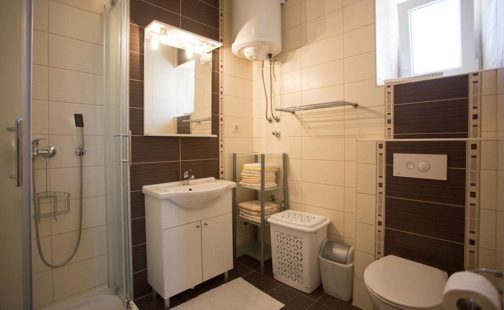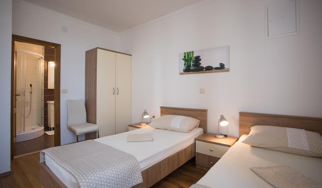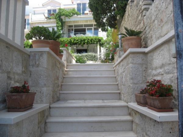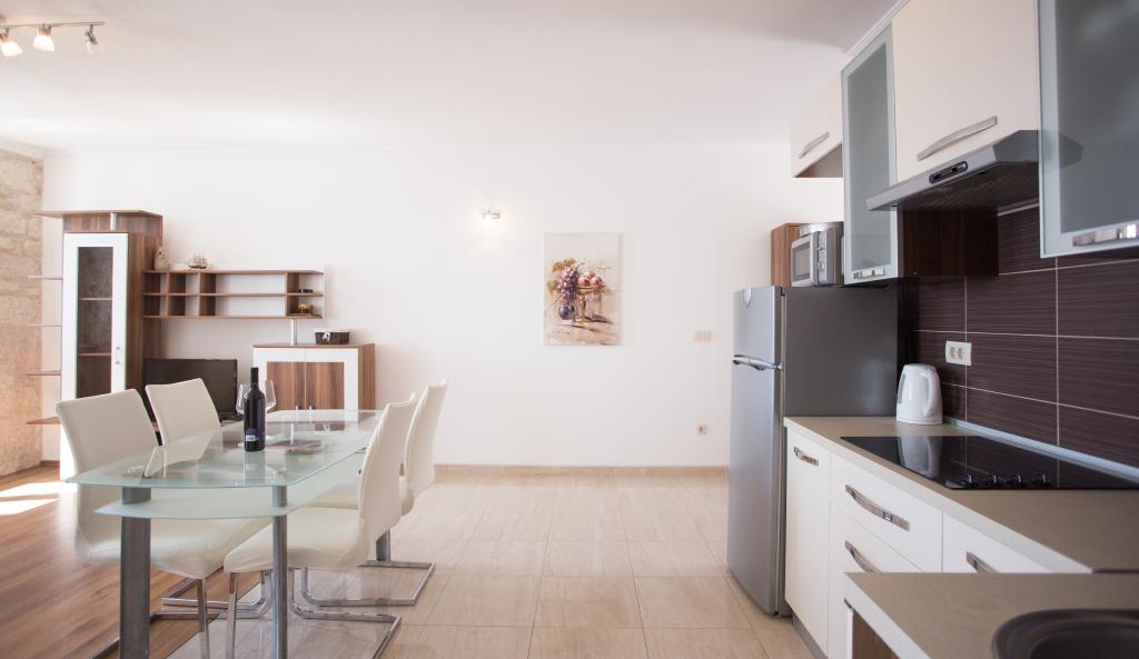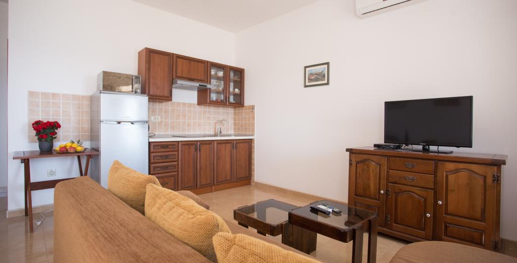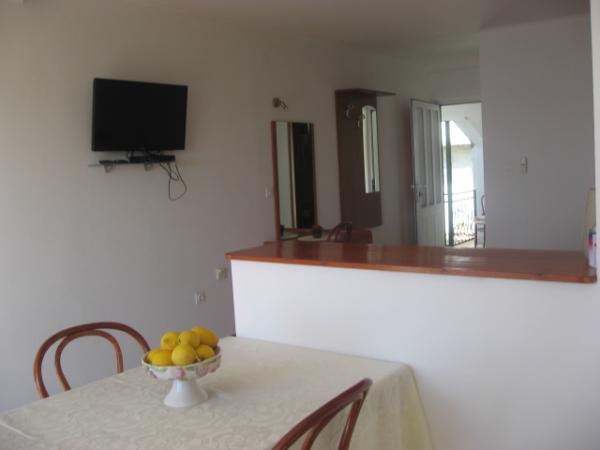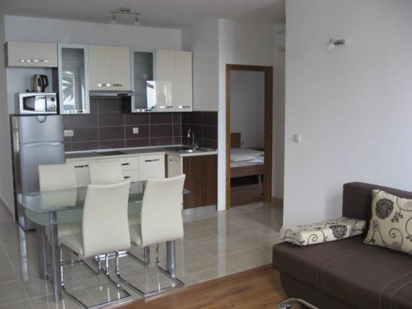 Appartements en bord de mer Jerry. Parking privé, qui se ferme. Chaque appartement possède un balcon et une terrasse. Entrée indépendante pour chaque appartement. 5 minutes à pied des banques, des bureaux de poste, des magasins, de la ville.