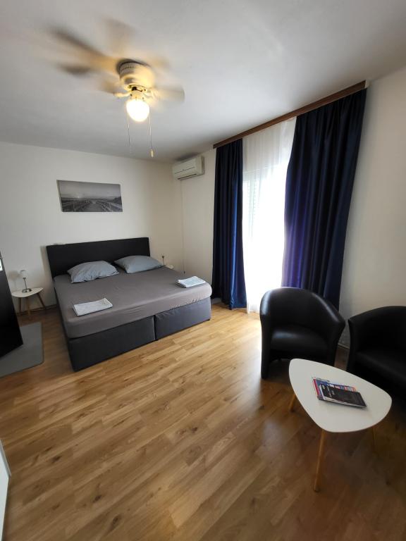 En savoir plus Unités d'hébergementLe prix de l'hébergement comprend l'hébergement dans l'appartement conformément à l'accord préalable, ainsi que l'accès à tous les équipements nécessaires pour un séjour agréable et sans souci. Vous bénéficierez d'un parking privé gratuit au sein de la résidence, d'une connexion Wi-Fi gratuite et de la climatisation dans l'appartement. Les appartements sont entièrement équipés et contiennent tout le nécessaire pour un séjour confortable : ustensiles de cuisine, couverts, vaisselle, serviettes et linge de lit. Le linge de lit est changé une fois par semaine et l'appartement est entièrement nettoyé et préparé pour votre arrivée. Paiement : Pour confirmer votre réservation, un acompte de 30 % du prix total de l'hébergement est requis, le solde étant à régler à votre arrivée. Il est également possible de régler la totalité du séjour à l'avance. Arrivée et départ : L'arrivée est possible à partir de 15h00 et le départ jusqu'à 10h00 le jour du départ. Capacité des appartements : Chaque appartement peut accueillir jusqu'à 4 personnes, ce qui en fait un choix idéal pour les familles ou les petits groupes.