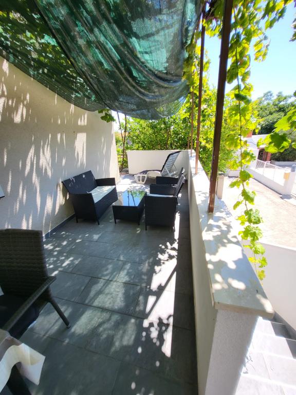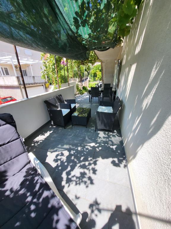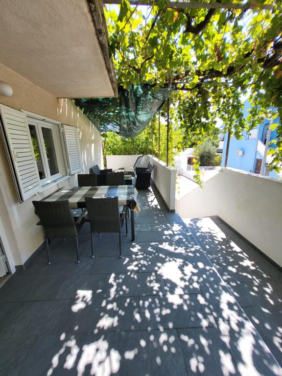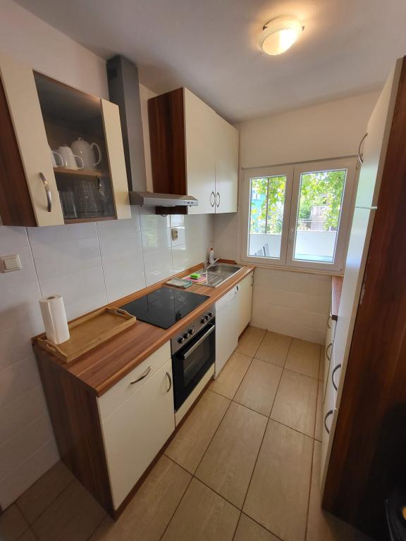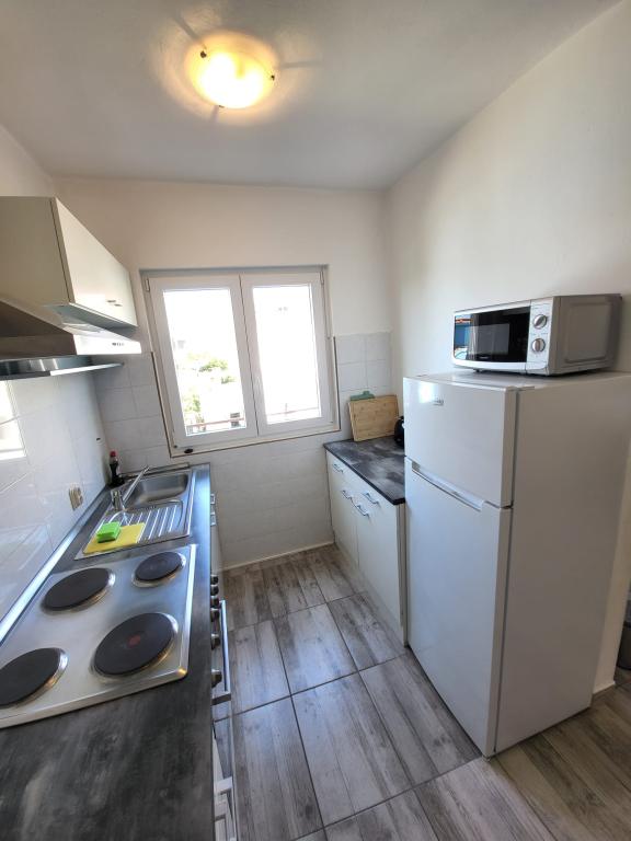 Nous sommes situés en plein cœur d'Orebić, à proximité immédiate de toutes les commodités. La plage est à quelques minutes à pied. À 50 mètres, vous trouverez une épicerie, une boulangerie, une pharmacie, un café et un fast-food. D'autres restaurants et activités sont également accessibles à pied. Cet appartement climatisé avec jardin offre un balcon, une terrasse et une vue sur la mer. Il comprend un parking gratuit, la climatisation, la télévision par satellite et le Wi-Fi. La cuisine est entièrement équipée. La maison se situe dans une rue calme, avec vue sur la mer, le jardin et la rue. Appartement AP1 (ID : 71816) : Superficie : 61 m² + terrasse de 16 m² + balcon de 7 m². L'appartement comprend une salle de bains, deux chambres, une salle à manger et une cuisine. Appartement AP2 (ID : 71815) : Superficie : 61 m² + terrasse de 4 m² + balcon de 7 m². La terrasse et le balcon sont couverts de stores pour vous protéger du soleil et aménagés avec du mobilier de jardin. L'appartement comprend une salle de bains, deux chambres, une salle à manger et une cuisine.