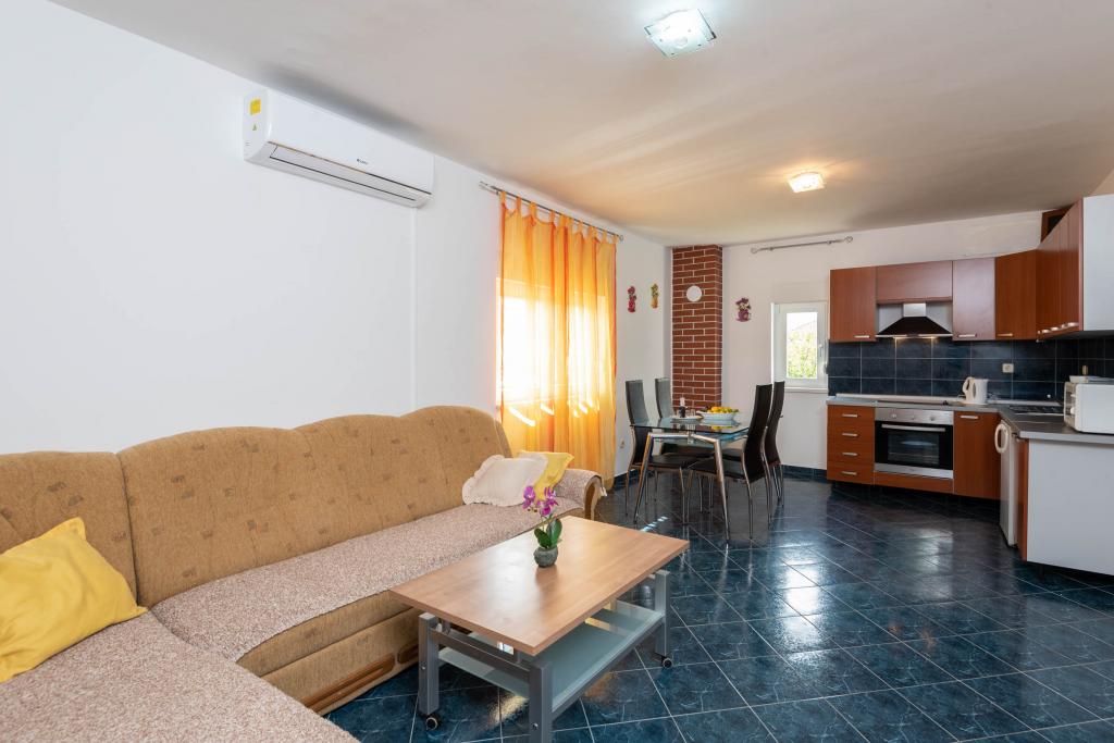 Avant d'arriver à l'appartement, comme nous avons quatre jeunes enfants et que nous voyageons de nuit, en accord avec la propriétaire, nous avons pu laisser la voiture sur le parking réservé aux invités et aller nager en attendant que l'appartement soit prêt. À notre arrivée, nous avons été chaleureusement accueillis par les hôtes qui nous ont offert une bouteille de délicieux vin rouge, du jus de fruits pour les enfants et de délicieux petits pains fourrés au chocolat. Le parking réservé aux invités est couvert pour protéger la voiture du soleil et des intempéries. Le Wi-Fi est gratuit et un code est inscrit dans l'appartement. Tout était propre et bien rangé. Serviettes de toilette à disposition, largement suffisantes pour nous six. Torchons de cuisine, papier toilette et torchons sont à disposition. La cuisine est équipée d'un four, d'un micro-ondes, d'un grille-pain et d'une plaque de cuisson. Le lave-linge fonctionne et lave. Des moustiquaires ont été installées pour éviter la présence de moustiques et autres insectes dans l'appartement, et un anti-moustique nous a été fourni en cas de besoin. La climatisation était également agréable et fraîche. Les habitants possèdent leur propre OPG avec d'excellents brandys et liqueurs (mon mari me l'a confirmé) et d'excellents vins rouges et blancs (je peux le confirmer moi-même). Un barbecue est à disposition à l'extérieur et les enfants ont un jardin pour jouer. En conclusion, si nous revenons à Orebić, je contacterai sans hésiter Mme Marijana pour un hébergement, car c'était agréable, confortable et plaisant.