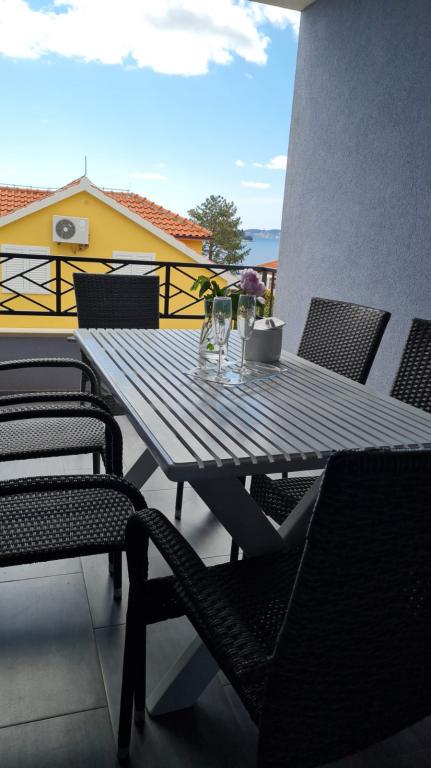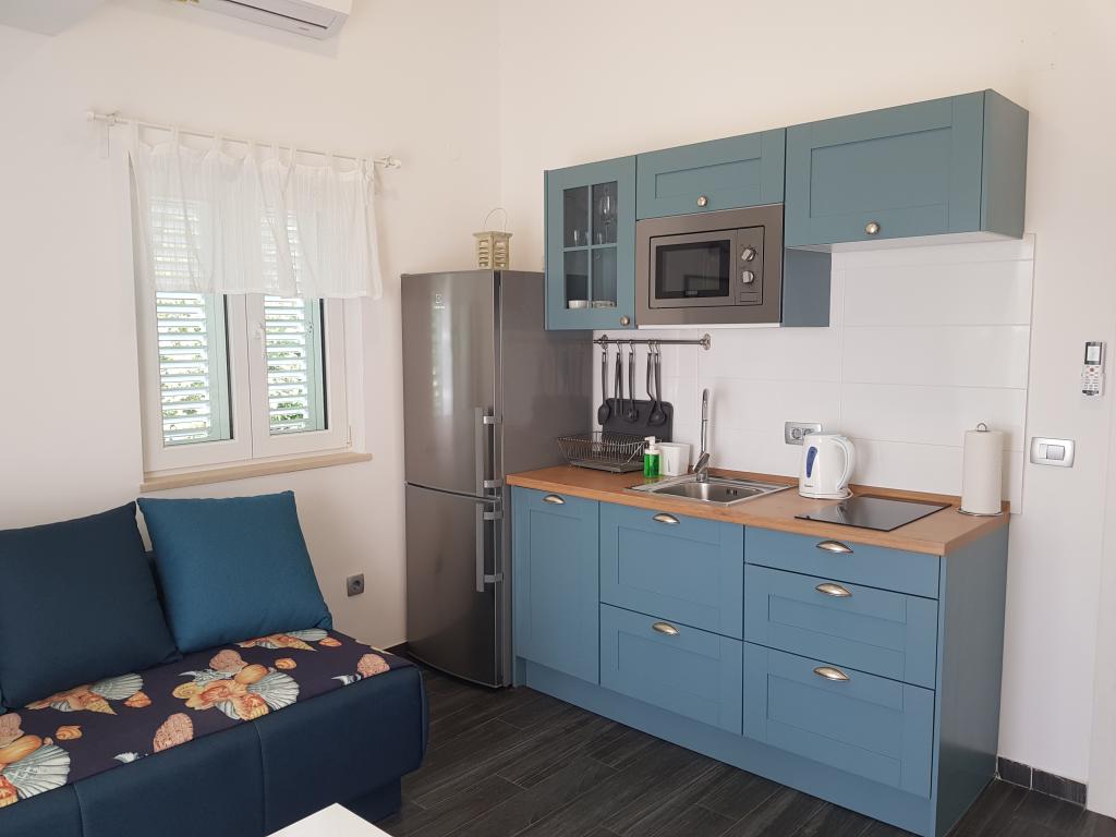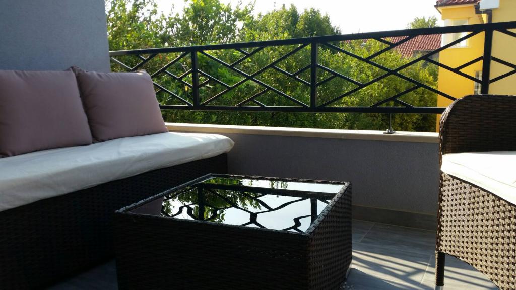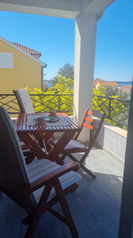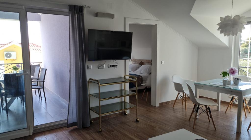 L'appartement est idéalement situé, dans une rue calme, à proximité de la plage principale et de tout le reste en bord de mer. Vous pourrez donc profiter de la vue sur la mer et les îles tout en allant au restaurant, manger une glace ou faire une excursion en bateau vers les îles voisines. Il est également proche de la route principale, où vous trouverez des boutiques, des boulangeries et des stands de produits locaux. En bref, pas besoin de voiture, car tout est à proximité. Le propriétaire est discret et est toujours à proximité si vous avez besoin de quoi que ce soit. Le studio est décoré de façon moderne, propre et le balcon est calme, suffisamment spacieux pour 2 personnes. Nous nous sommes sentis à l'aise pendant notre séjour et je recommanderais l'appartement à tout le monde.