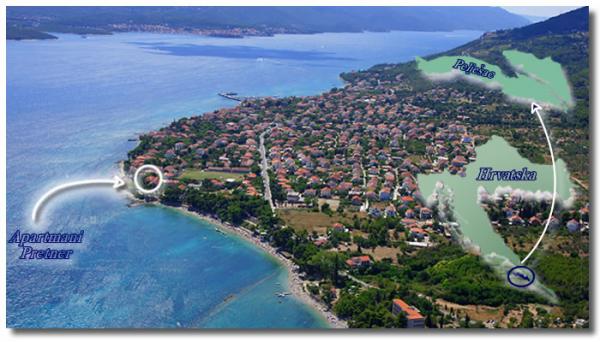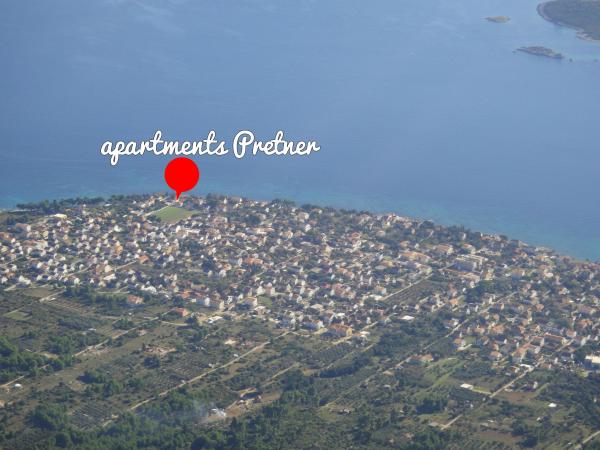 Appartements Pretner à Orebic sur la péninsule de Peljesac sont situés dans un environnement calme et paisible, à la mer, à côté de la plage de sable Trstenica. D'abord 2000m2 comprend le côté jardin plein sud de verdure à la végétation méditerranéenne et une cheminée qui est à la disposition des clients. Du côté nord il y a des arbres d'agrumes et d'oliviers et un grand parking. Chaque appartement est climatisé et équipé d'une télévision par satellite et d'Internet sans fil.