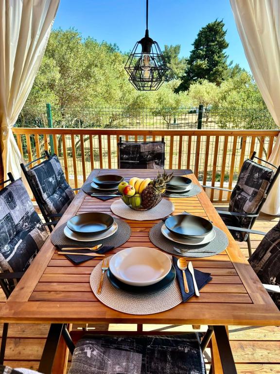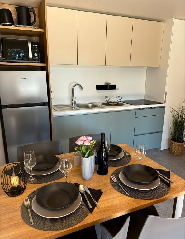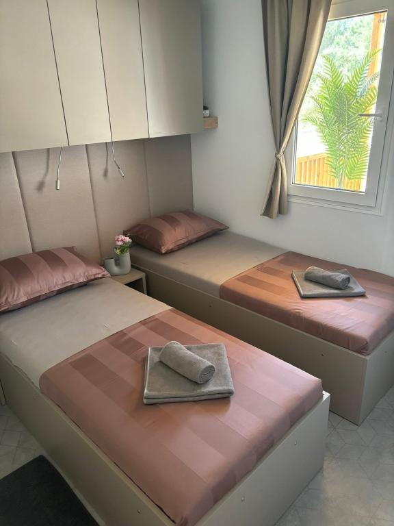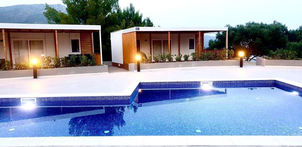 Description du bien : Mobil-home de luxe moderne ️ À 50 mètres de la plage À quelques pas de la piscine Pour max. 5 personnes. Convient aux bébés (lit bébé gratuit). Convient aux enfants. Animaux acceptés. 1 chambre avec lit double (160x200). 1 chambre avec deux lits simples (80x200). 1 canapé-lit (90x200). 2 salles de bain séparées. Cuisine équipée avec lave-vaisselle, réfrigérateur, congélateur, micro-ondes, grille-pain, bouilloire, plaques électriques… Machine à café. Terrasse et salon de 30 m². Transats. Parking gratuit. Wi-Fi gratuit. Climatisation. Barbecue. Télévision connectée Android. Répulsifs anti-moustiques gratuits. Douche extérieure près de la piscine. Supermarché à 100 m. Restaurants à proximité. Cafés et bars à proximité. Location de voitures à 500 m. Boisson de bienvenue et bonbons offerts. Vieille ville de Korčula à proximité. Port de ferry à 1500 m. Ambulance à 1000 m. Bureau de poste à 1300 m. Station-service à 1000 m. Centre de surf de Viganj à 8 km.
