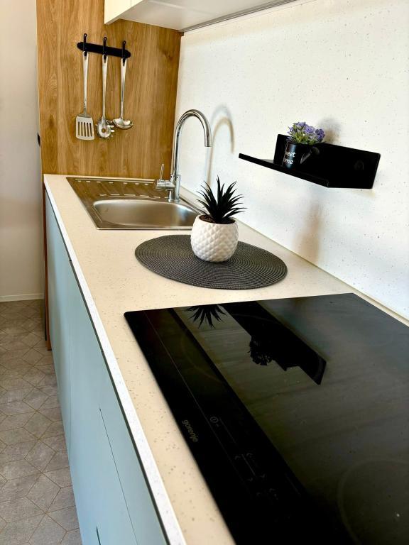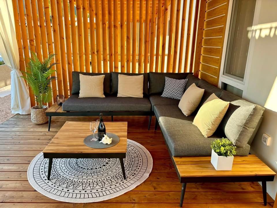 Découvrez un mobil-home moderne de style méditerranéen, situé dans la charmante ville dalmate d'Orebić (Camp « Dalmata »), au cœur d'une nature préservée et de plages de sable fin. Vous y trouverez également de nombreux restaurants et domaines viticoles proposant une cuisine raffinée et des vins réputés. Détendez-vous sur la terrasse de 30 m², à deux pas de la piscine, équipée de transats, d'un coin salon extérieur et de tout le confort nécessaire pour un séjour placé sous le signe de la détente.