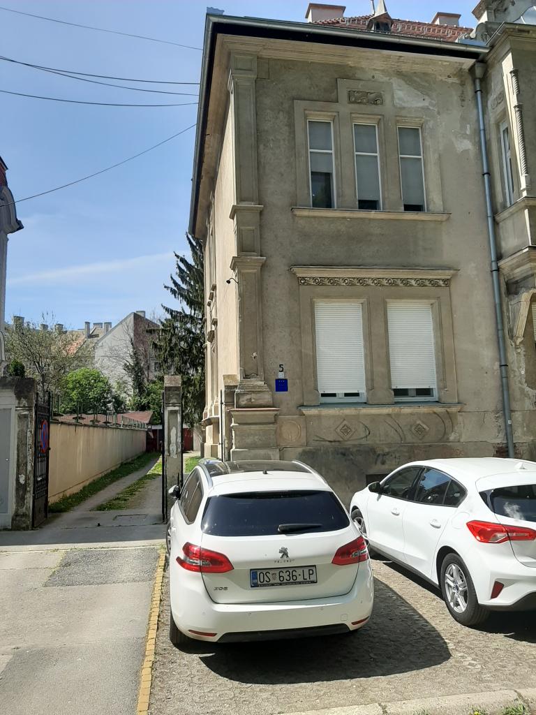 Je loue un appartement avec cour entièrement équipé pour 2+2 personnes dans un quartier très calme d'Osijek, face au parc King Tomislav et aux courts de tennis, à 50 m de la passerelle et de la promenade, à 250 m de Tvrđa (vieille ville) et à la même distance du centre. Rue sans issue, peu fréquentée, parking gratuit dans la cour. À proximité se trouvent le marché principal (environ 200 m), la poste principale, une boulangerie, un centre de santé, une pharmacie, etc.