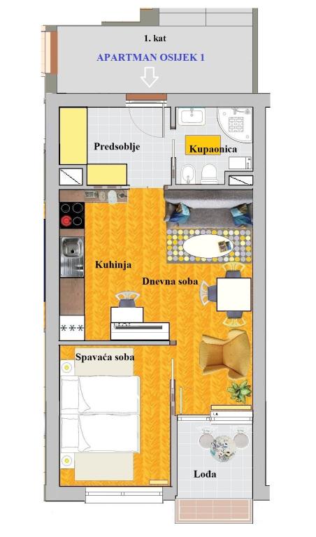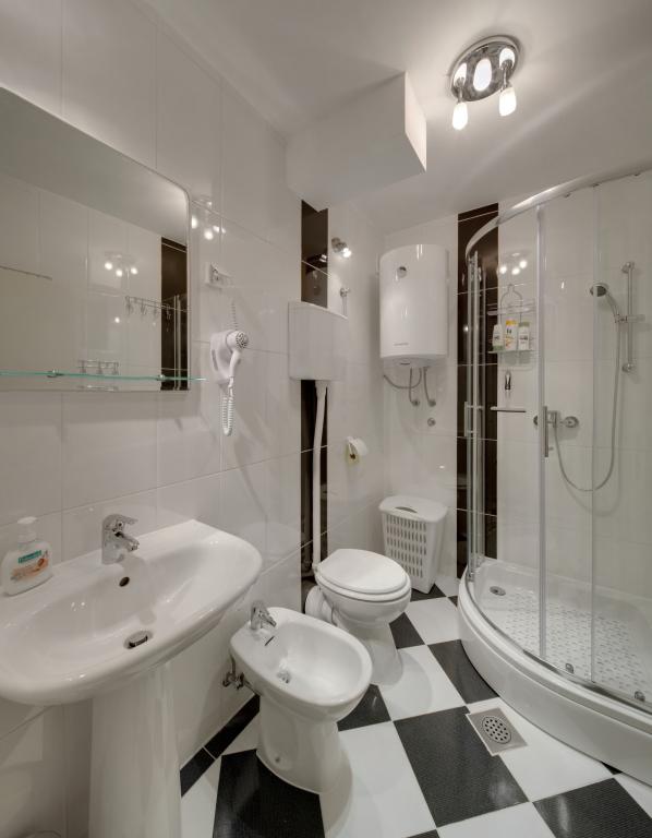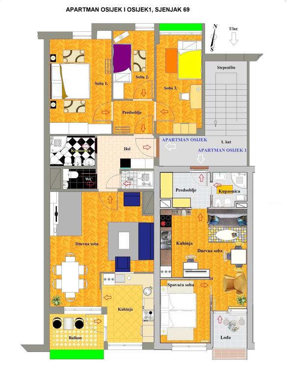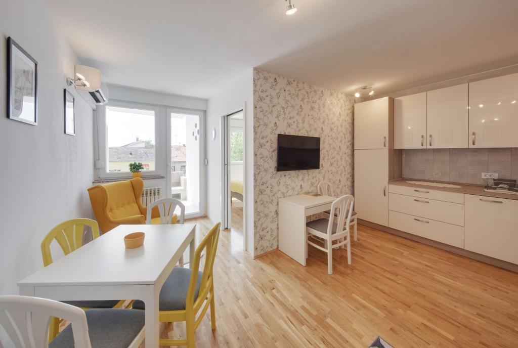 Les appartements Osijek et Osijek 1 sont situés au 1er étage d'un immeuble dans le quartier résidentiel calme de Sjenjak, à côté duquel se trouvent un grand parking gratuit et un arrêt de tramway. Les appartements sont proches des rues et routes principales qui relient Osijek aux villes environnantes et à l'autoroute A5. A proximité se trouvent : le stade de football et la salle de sport "City Garden", "City Pools", les restaurants et le centre historique d'Osijek - la forteresse baroque. L'appartement Osijek est un appartement de quatre pièces d'une superficie de 92 m², avec un salon ensoleillé et un quartier calme au nord pour le repos nocturne. Il y a une chambre avec un lit double, deux chambres simples, un séjour avec un canapé lit, deux salles de bains, des toilettes séparées, une cuisine et un balcon. L'appartement Osijek 1 est un appartement de deux pièces d'une superficie de 40 m² et est situé à côté de l'appartement de quatre pièces Osijek. Il comprend une chambre avec un grand lit double pouvant être séparé en deux lits séparés. Dans le salon, qui communique avec la salle à manger et la cuisine, se trouve un ensemble de canapés : un canapé pliant, un fauteuil