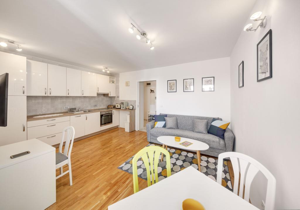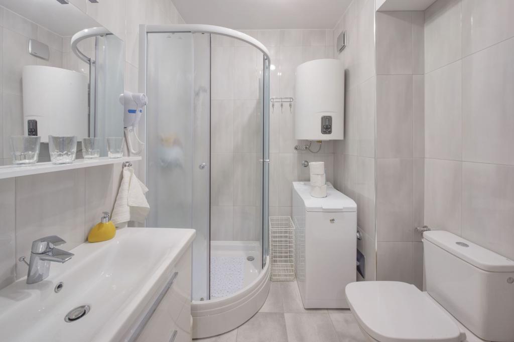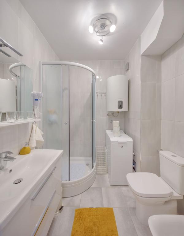 Les appartements sont équipés de tous les appareils nécessaires pour rendre votre séjour le plus agréable possible. Le salon dispose de la climatisation, de la télévision par câble et d'Internet sans fil. La cuisine est équipée d'une cuisinière avec hotte et four, d'un lave-vaisselle, d'un réfrigérateur, d'un four micro-ondes, d'une machine à café, d'un chauffe-eau, d'un grille-pain et de tous les ustensiles de cuisine nécessaires. Dans la salle de bain, vous avez à votre disposition un sèche-cheveux, des serviettes et des accessoires de bain. Si nécessaire, vous pourrez utiliser le lave-linge, la planche et le fer à repasser. Sur demande, une chaise et un lit supplémentaires pour les petits enfants peuvent être préparés. En entrant dans l'appartement, vous devenez utilisateur et tous vos commentaires nous sont précieux car ils contribuent à rendre les prochains invités plus satisfaits. Surtout s'il y a eu un dysfonctionnement de l'équipement, des appareils ou une panne de stockage. Veuillez nous en informer immédiatement afin de vous assurer que vous êtes satisfait de notre service et de votre séjour dans l'appartement dans les plus brefs délais.