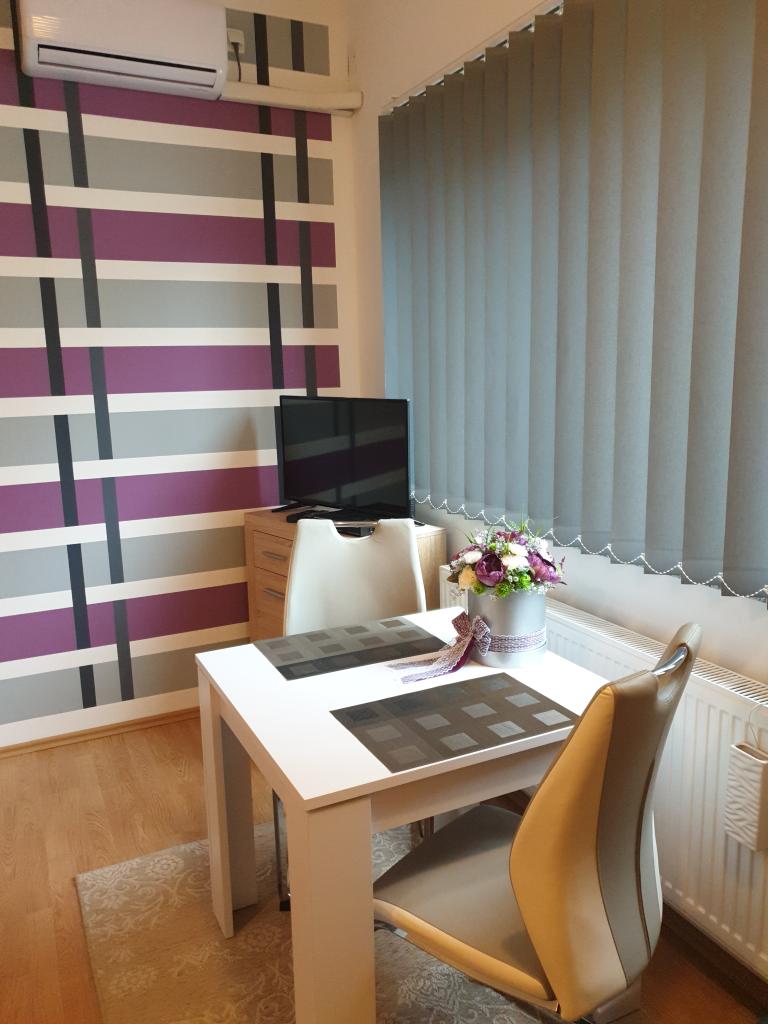 Nouveaux appartements à la décoration moderne à Osijek. Ils sont situés dans un quartier calme de la ville, à proximité du stade et de la salle et de la piscine Gradski Vrt. L'arrêt de bus est à 20 mètres. La capacité de l'appartement est de 1 à 4 personnes, il y a un centre commercial, un café-bar, une pizzeria et des restaurants à proximité. Un parking gratuit est disponible. L'appartement se compose d'une chambre avec un lit double 180x200, TV SAT, Wi-Fi, cuisine, salle de bain et couloir. Nous offrons à tous les clients de l'appartement Salic une vue gratuite au télescope de Jupiter, Saturne et la Lune.