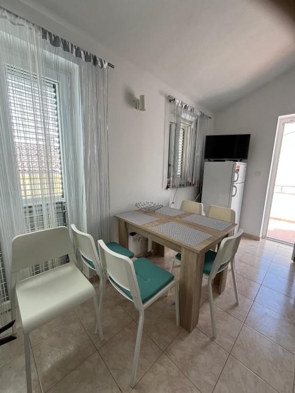 L'appartement au premier étage. Entièrement équipé. Dans un quartier calme de Mandre. Distance 200m. Capacité jusqu'à 6 personnes. Près de RCA, Novalja et la vieille ville. La plage offre une vue sur les îles Maun, Silba, Maun et Olib et Mandre est considéré comme l'un des plus beaux endroits de l'Adriatique. Il est adapté aux familles avec enfants.