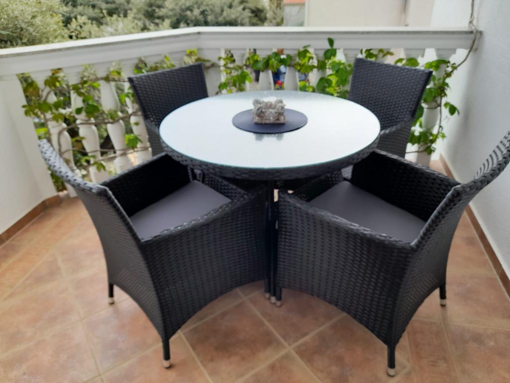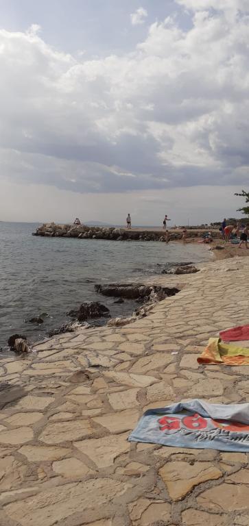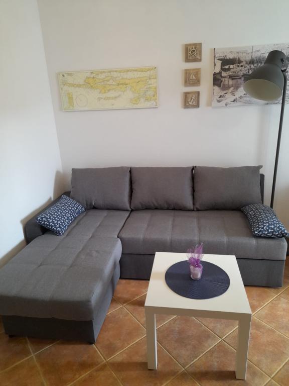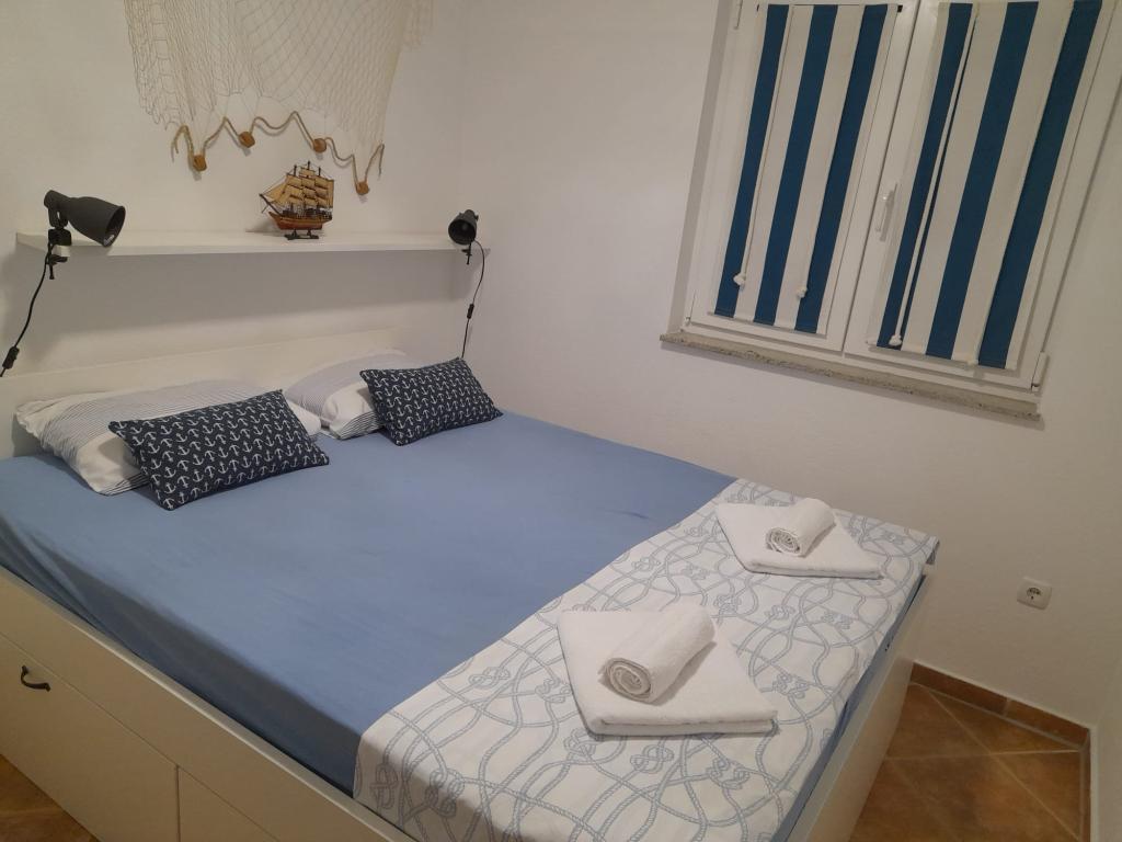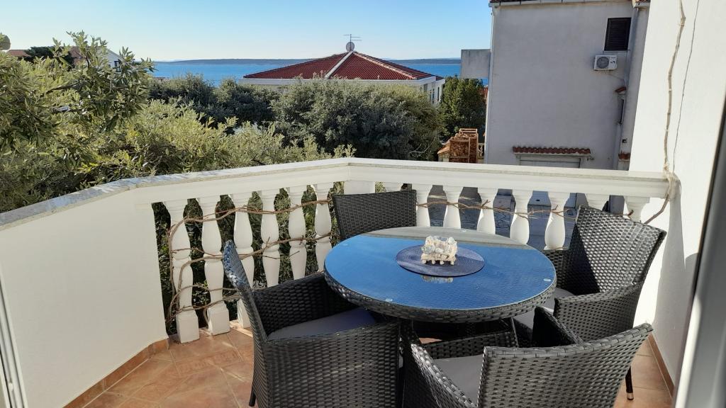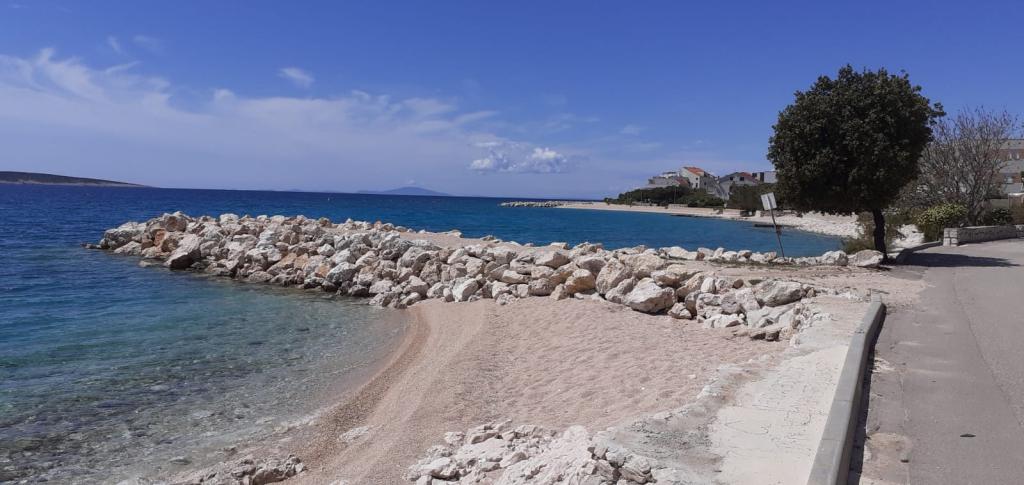 Appartement entièrement équipé dans un endroit calme Mandre, sur l'île de Pag. Proche de la plage, parking, climatisation, grill, vue mer, moustiquaires, wifi, TV satellite, tv.