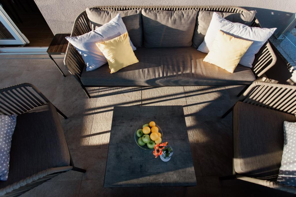 L'appartement est confortable, douillet, avec un intérieur très moderne, un service d'accueil de très haut niveau : mobilier, électroménager et appareils de haute qualité, des lits confortables pour dormir avec une literie et des oreillers de très haute qualité, un éclairage discret..... Nous avons préparé nos propres repas et pris le petit-déjeuner, le déjeuner et le dîner dans l'appartement et sur le balcon. Une belle vue sur la mer depuis ce grand balcon soigneusement meublé. Le canapé très confortable pour s'asseoir et s'allonger sur le balcon vous donne envie de vous allonger dessus et de ne pas bouger... vous respirez l'air pur de la mer et écoutez le chant des oiseaux dans le bosquet juste en face de l'appartement... ça la ceinture verte tout au long de la rue regorge d'oliviers, de lauriers, d'épicéas, de cyprès et d'autres plantes méditerranéennes. Entrée soignée, escalier en marbre... Dans la même rue (au bord de la mer) il y a une pâtisserie avec terrasse et de délicieuses glaces et tasses, et un peu plus loin dans la rue principale un bistro avec terrasse sur la falaise avec un excellent café et cocktails. Au bord de la mer se trouve une promenade de quelques kilomètres, que nous avons utilisée au maximum le matin et au coucher du soleil impressionnant. La saison de baignade vient de commencer, nous nous sommes contentés de tremper nos pieds dans la petite baie sablonneuse. La mer est merveilleusement bleue, propre et claire. La plage s'étend sur toute la partie de la promenade. s'il n'est pas possible de rester à proximité de la verdure, un parasol est nécessaire. Pendant tout notre séjour dans l'appartement, nous nous sommes sentis très, très bien...,,il dégage clairement une "énergie positive". Nous recommandons!!!!!