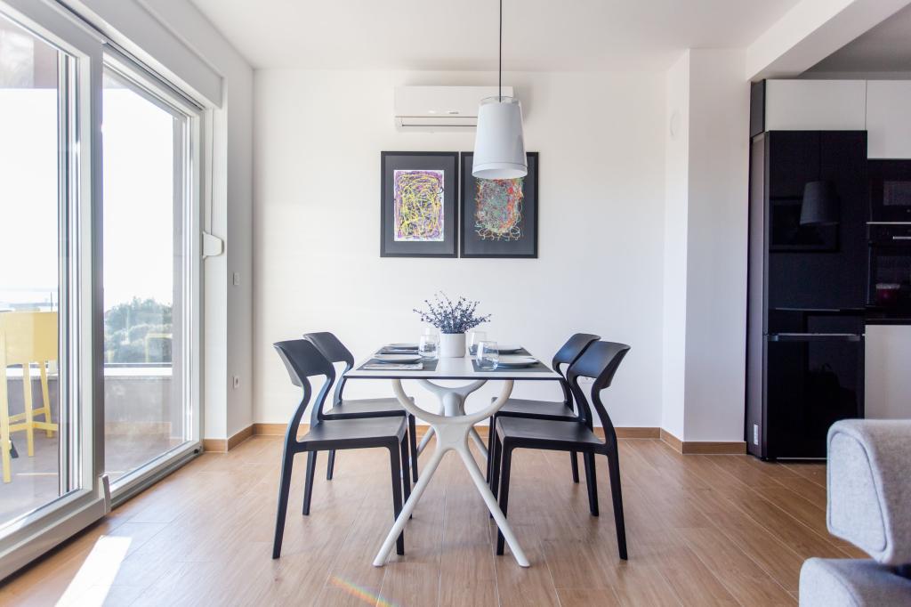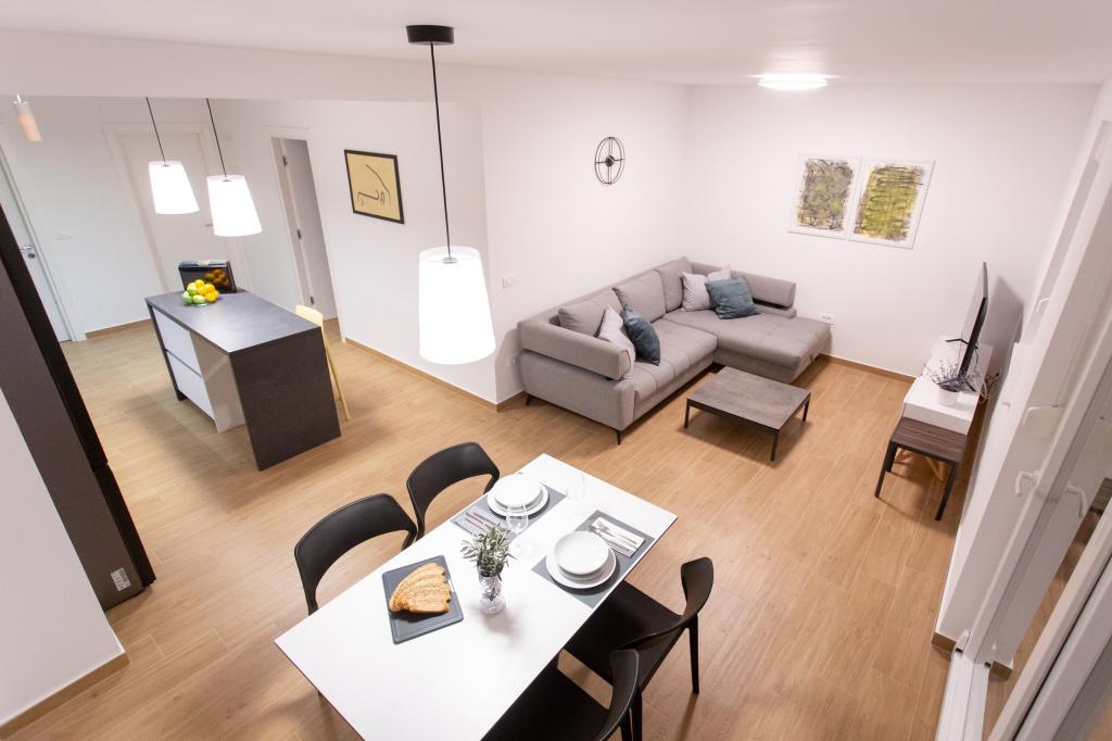 Appartement avec une belle vue depuis la terrasse et parfaitement équipé, neuf. Une rue calme, et tout ce dont vous avez besoin à 5 minutes à pied (magasin, pharmacie, centre, agréable terrasse de café, pâtisserie...). Une promenade pour flâner ou faire du jogging sur 10 km... la mer est claire et les plages regorgent de douces entrées vers la mer. Festin et merveilleuses vacances