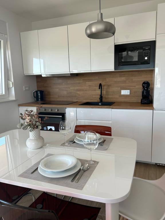 Appartement récemment rénové, cuisine entièrement équipée avec électroménagers. Espace climatisé. Deux grandes chambres avec deux lits très confortables, matelas et oreillers confortables. Une grande terrasse pour profiter de la vue sur la mer, la plus belle le matin pour boire un café et le soir pour se détendre après la baignade. Grand séjour, grande TV avec satellite. La plage et la mer sont vraiment à proximité. Recommandé à tout le monde.
