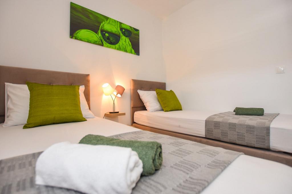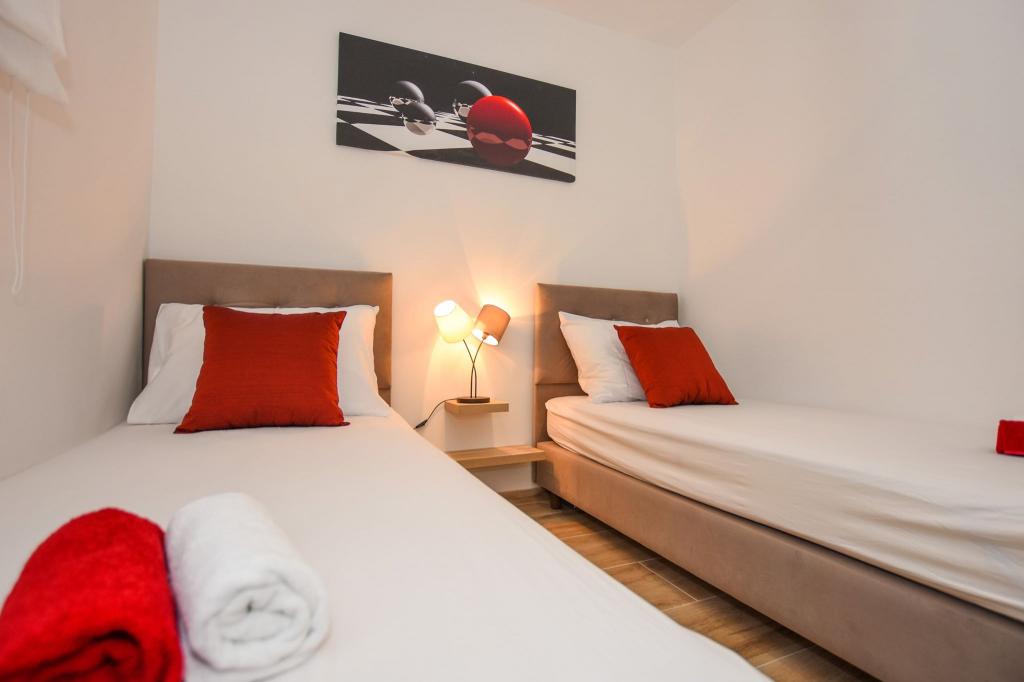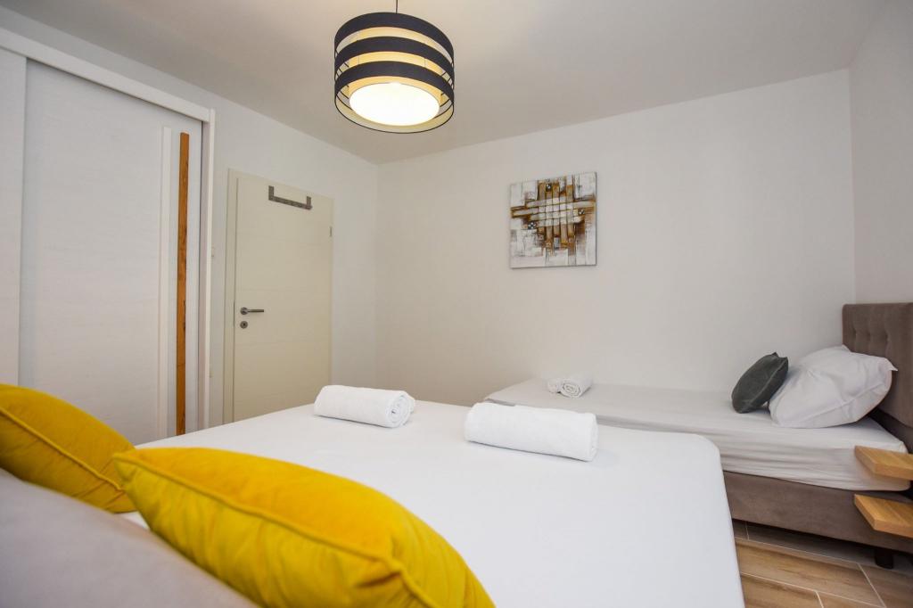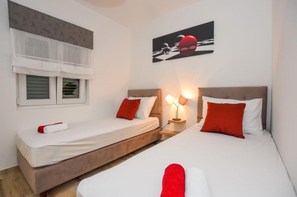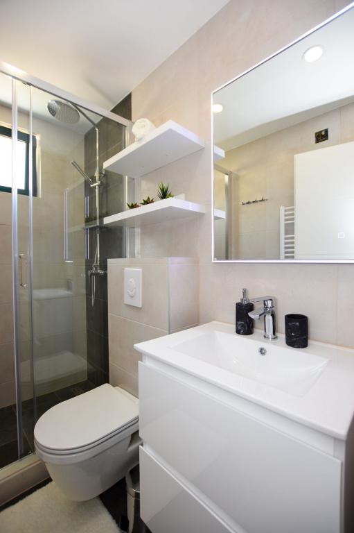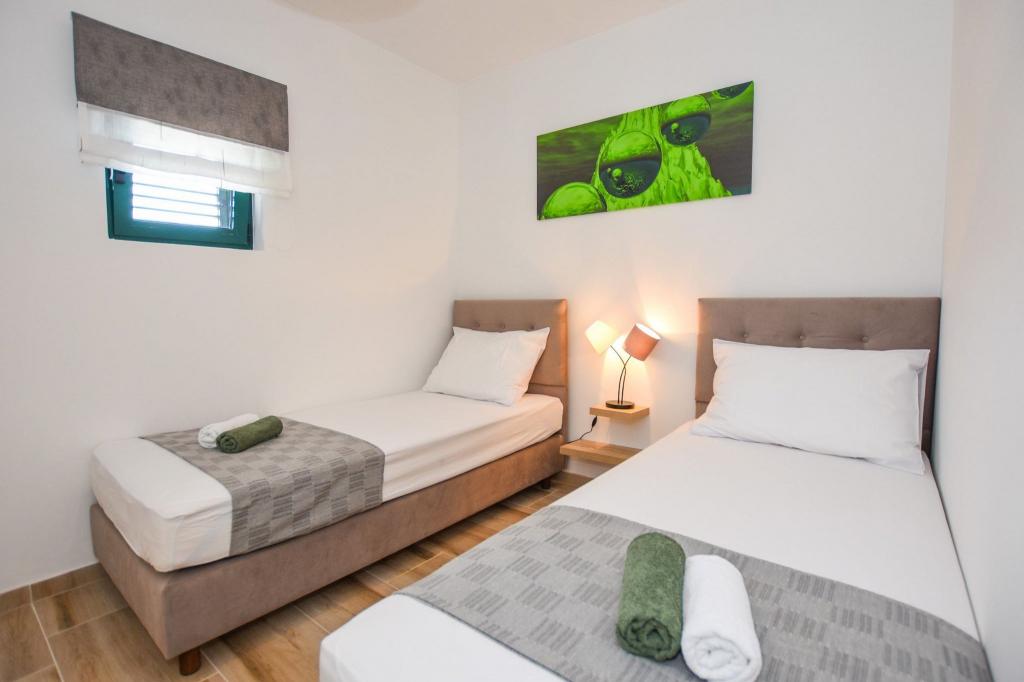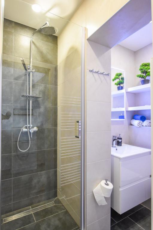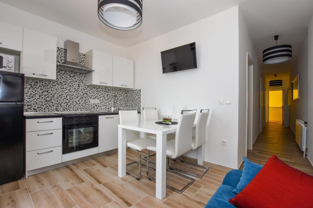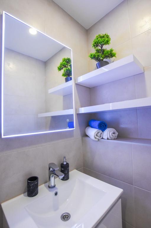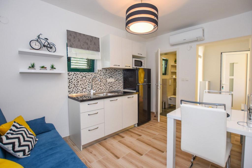 6 nouveaux appartements au décor moderne, toutes les unités comprennent la climatisation, une salle de bain privée avec douche et une cuisine avec lave-vaisselle, réfrigérateur, grille-pain et bouilloire, ainsi qu'une salle commune pour laver, sécher et repasser, Wi-Fi gratuit, TV LED, cafetière , lit bébé. Parking privé gratuit à moins de 50 mètres. Une terrasse est disponible pour certains logements. Dans un rayon de 20 mètres, il y a de belles plages, des cafés, une aire de jeux pour enfants, des restaurants, des boutiques et une salle de jeux.
