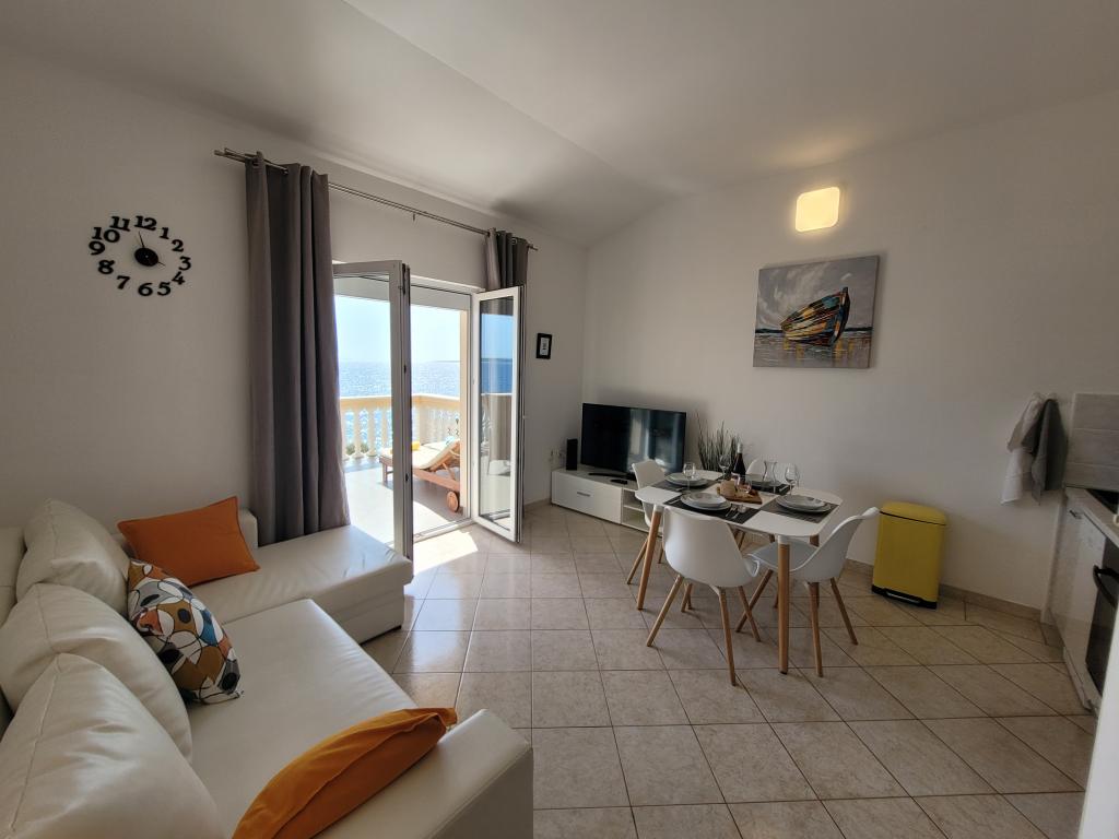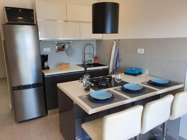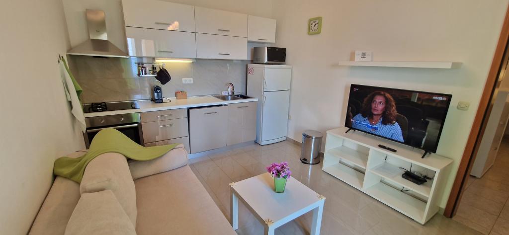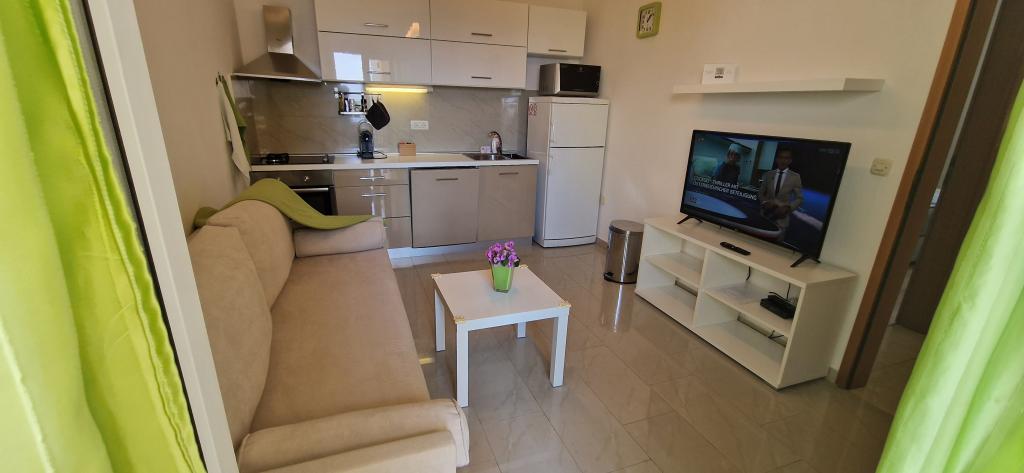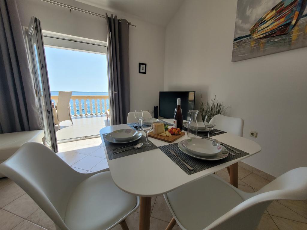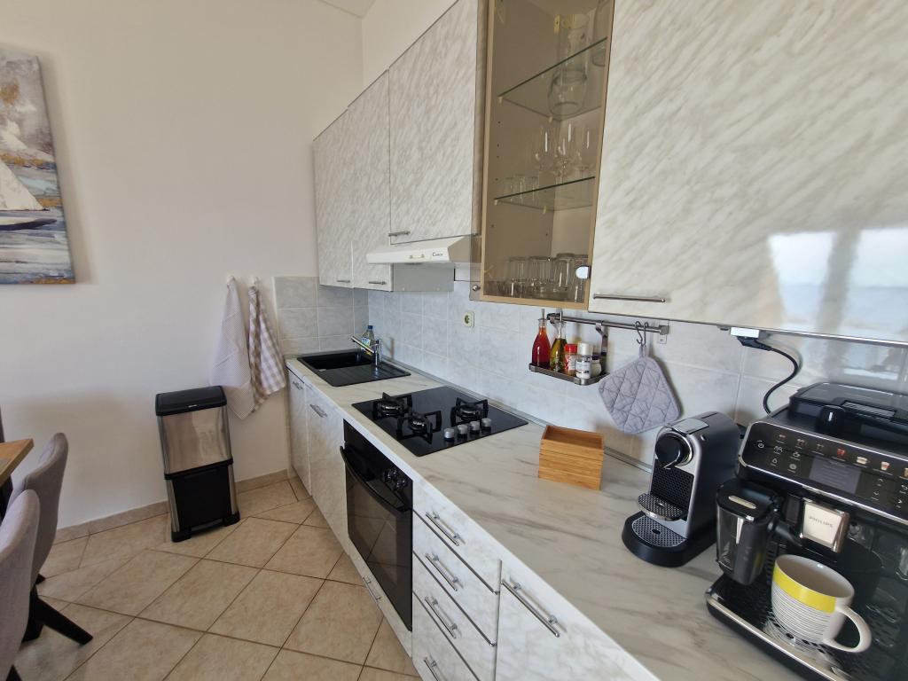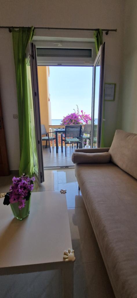L'appartement est simplement parfaitement équipé, tout ce dont vous avez besoin, l'emplacement est un rêve, la vue sur la mer depuis la terrasse ne pas dépasser Au supermarché, vous avez de la chance avec des petits pains. Après 20 mètres, vous pouvez sauter dans la mer. La propriétaire Iris, toujours pour un toujours sympathique. Nous louons des appartements depuis 40 ans et nous avons eu beaucoup de logements agréables, mais rarement un où l'emplacement et l'appartement était vraiment génial!