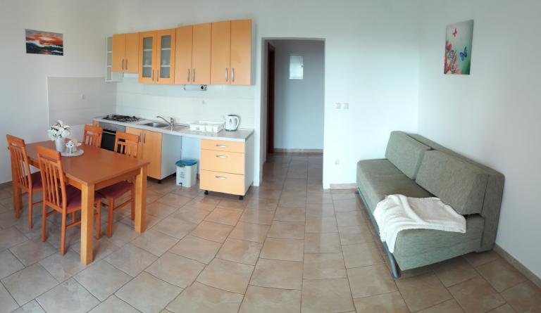 Les appartements sont situés à 300m de la mer, meublés, en plein centre de Mandri.
