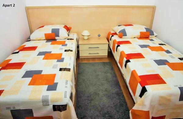 Trois appartements à louer dans des maisons à Mandre. Deux appartements Maris 1 et Andrea 2 sont à l'étage et un Andrea 1 est au rez-de-chaussée. Tous les appartements ont des entrées séparées. En outre, les appartements sont adaptés aux vacances d'une ou plusieurs familles. Ils sont situés dans une zone surélevée avec une belle vue sur la mer Adriatique. Ils sont situés dans une partie moins peuplée de Mandre et entourés de forêts de conifères, ce qui crée une véritable atmosphère de détente et de plaisir. Les appartements se composent d'une cuisine, d'un salon, d'une salle de bains et de deux chambres. Une chambre a un lit double, tandis que l'autre a deux lits simples. Les appartements disposent également d'une terrasse privée et d'un parking gratuit. La plage est à 200 m Possibilité de louer un bateau dans le port voisin. Une avance est versée comme confirmation de réservation. Taxe de séjour incluse dans le prix. Vous pouvez voir les dates gratuites pour les appartements sur le calendrier ou nous envoyer une demande par e-mail. Nous accueillerons chaque invité. Bienvenue!