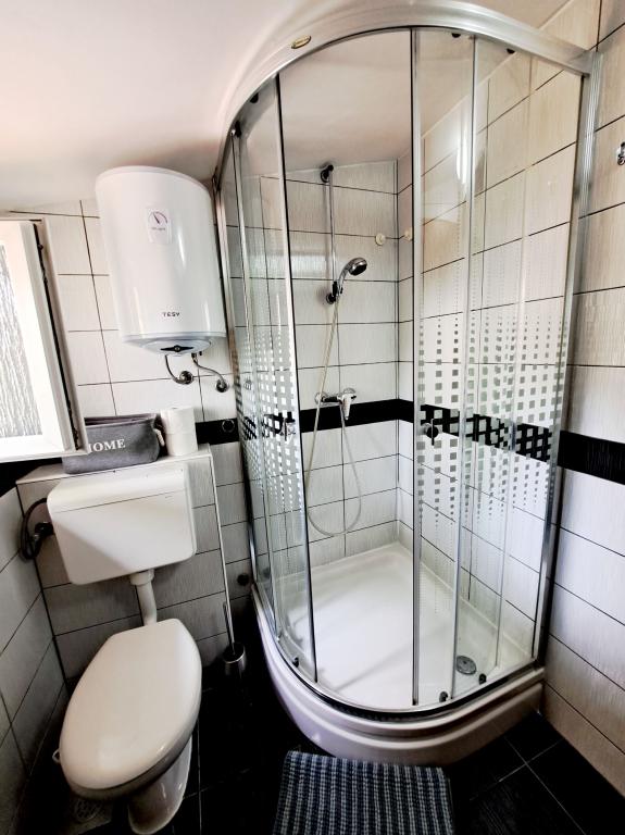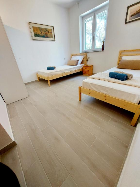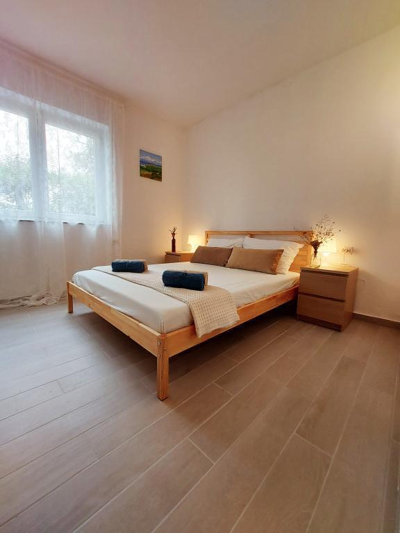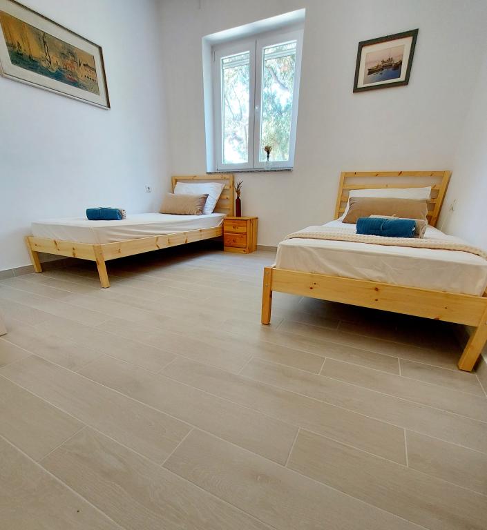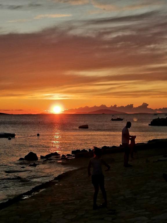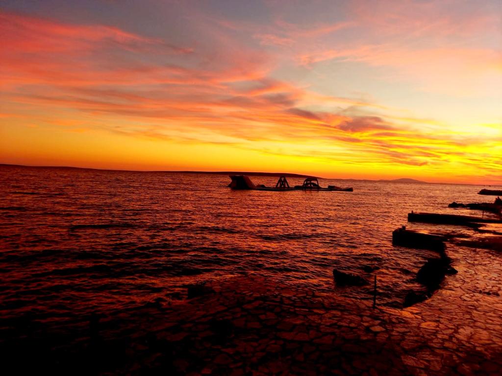 Mandre, village touristique et de pêcheurs de l'île de Pag, est situé au sud de l'île et offre une vue imprenable sur Silba et Olib ainsi que sur les îlots de Maun et Škrda, qui regorgent de baies et de magnifiques plages. Notre maison se trouve en première ligne face à la mer, à côté d'une plage de galets. Il vous suffit de sortir de la cour, de traverser la plage et de vous baigner dans une eau cristalline ! Les appartements sont entièrement équipés et entourés d'une cour spacieuse et ombragée. Un parking gratuit est situé juste devant l'appartement. C'est un lieu idéal pour des vacances en famille avec enfants et pour les amoureux de la nature. Mandre possède une côte découpée, avec une promenade de 3 kilomètres et des plages de galets. Le village est à 14 km de Novalja et Zrće, à 16 km de la ville de Pag et à environ 60 km de la ville historique de Zadar. Au coucher du soleil, bercés par l'air marin et le bruit des vagues, venez profiter de notre havre de paix. Dans la cour spacieuse, il est possible de ranger des vélos et une planche de SUP pour la pratique du paddle.