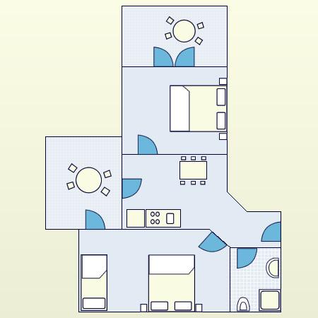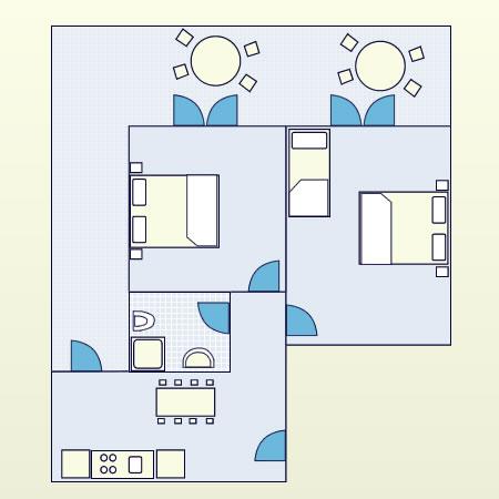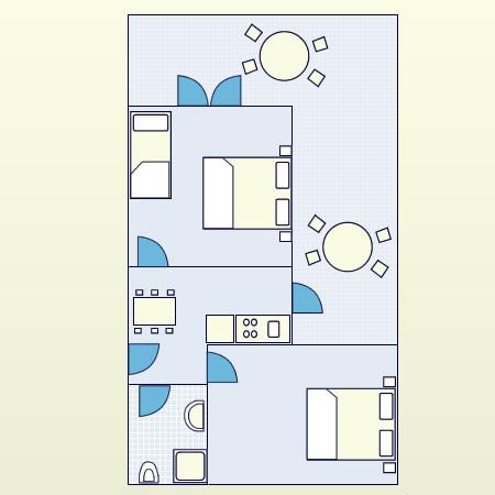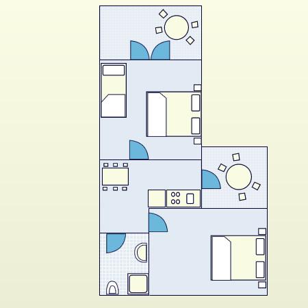 Appartement pour deux personnes avec deux lits supplémentaires (50 m2)