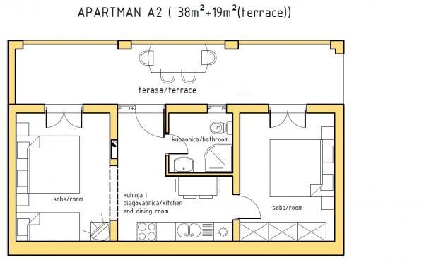 Les appartements décorés et équipés Capo sont situés sur l'île de Pag dans un quartier calme de Pag. Situés à seulement 1500 m du centre-ville, ils offrent une belle vue sur la baie de Pag et offrent la paix et la sécurité nécessaires pour le reste d'entre vous et votre famille. Près de l'appartement, il y a de nombreuses belles plages de sable et de galets à seulement 5 minutes à pied. Les appartements disposent de 2 chambres, d'une cuisine avec coin repas, d'une salle de bain avec douche et WC et d'une grande terrasse avec de belles vues. Les appartements sont équipés de TV satellite, climatisation et internet WIFI gratuit. Chaque appartement dispose de son propre parking gratuit.