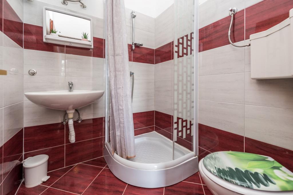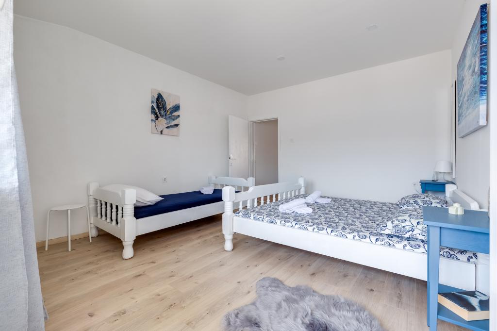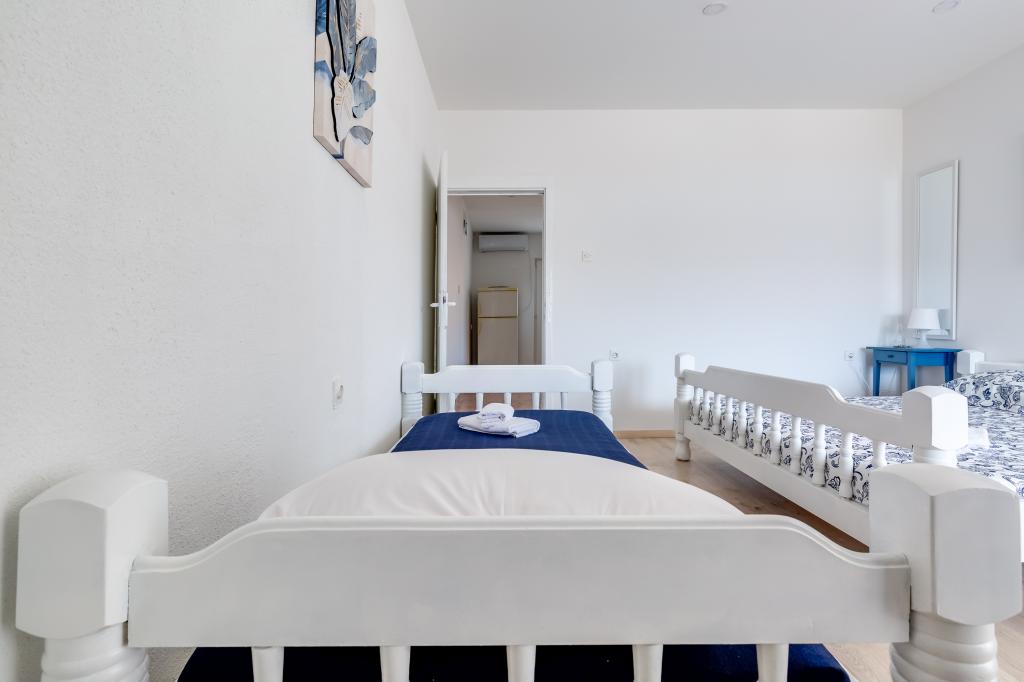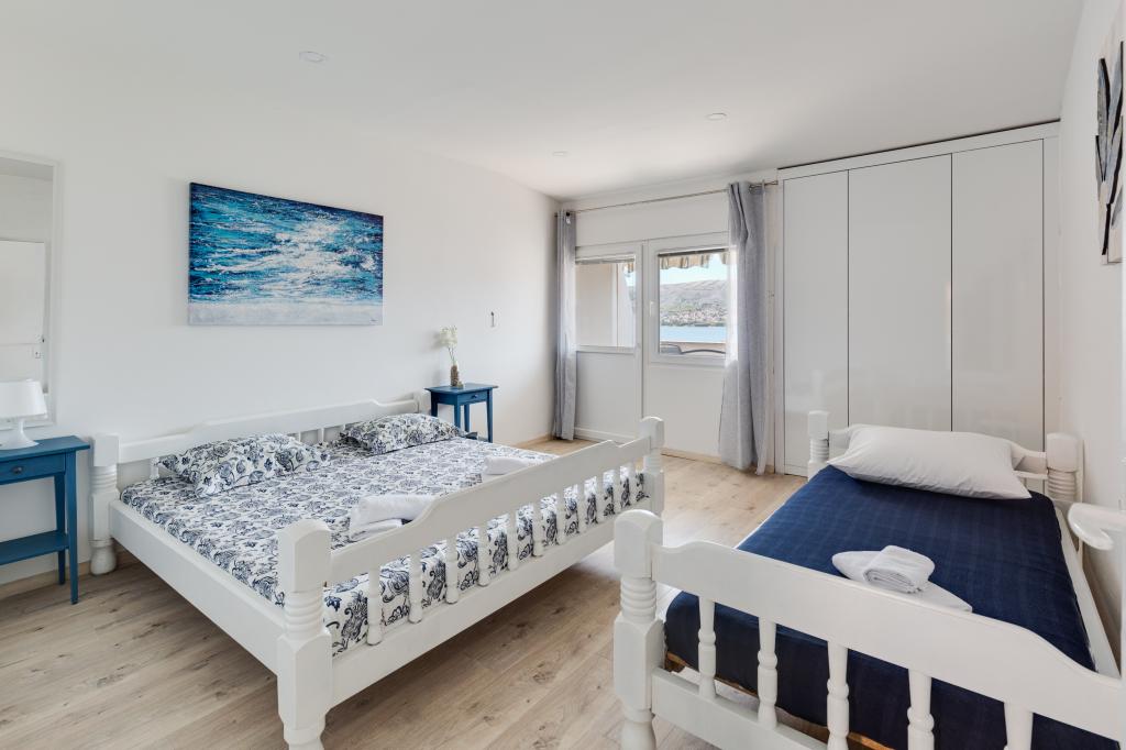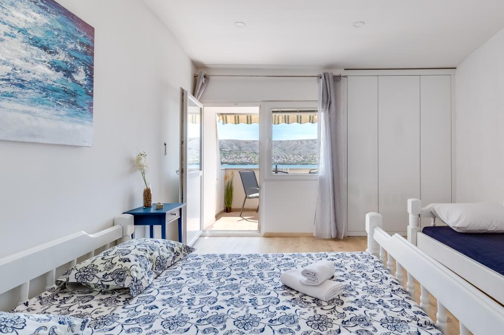 . Appartements Filip sont situés dans la ville de Pag. L'appartement est équipé avec trois lits dans la chambre, un lit double et un lit simple et la possibilité d'utiliser le berceau. Arrangement vous assure chambre ininterrompue: chambre à coucher, salle de séjour avec cuisine, salle de bains avec douche et terrasse privée donnant sur la mer. Les appartements sont équipés avec vaisselle et couverts, serviettes de bain et le linge de lit pour chaque lit, réfrigérateur avec congélateur, cuisinière, télévision et air conditionné qui vous donne un sommeil réparateur pendant les chaudes soirées d'été. Si vous voulez des vacances en famille tranquille, vous vous sentirez comme à la maison. Si vous souhaitez passer vos vacances avec un groupe d'amis, Filip appartements sont l'endroit idéal pour vous Entourage entrées Zrce est à 20 minutes en voiture ou en transports en commun. La plage est à environ 100-150 km se étend le long de la côte. Chaque appartement dispose d'un espace de stationnement. Et votre hôte est toujours usluzi.Cijena sur demande.