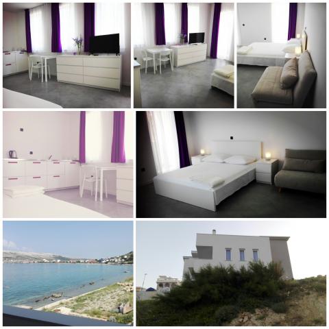 Je loue des studios et une chambre dans la ville de Pag, au premier rang de la mer. Chaque studio et chambre dispose de la climatisation, d'une connexion Wi-Fi gratuite, de la télévision par satellite et d'un parking gratuit. La distance du centre-ville est d'environ 10 minutes à pied. Il y a une petite plage devant la maison, qui est une extension de la plage principale de la ville.