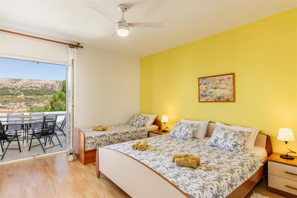 L'immeuble mGarden est situé dans la ville centenaire de Pag, près de la mer et à 15 minutes à pied du centre-ville, mais suffisamment loin pour une paix et une intimité totales. De l'avant de la maison, il y a une vue fabuleuse sur la mer et les rochers blancs de Pag exposés par la tempête, et de l'arrière, la vue captive une haute colline rocheuse parsemée d'une végétation de Pag clairsemée. Les appartements récemment rénovés sont équipés de tout le nécessaire pour des vacances agréables. L'immeuble peut accueillir jusqu'à 20 personnes dans 4 appartements. La grande cour cachée vous invite à vous reposer sous les oliviers, avec les odeurs du barbecue, tandis qu'un soin particulier est consacré aux activités pour les plus jeunes. Accueillir!