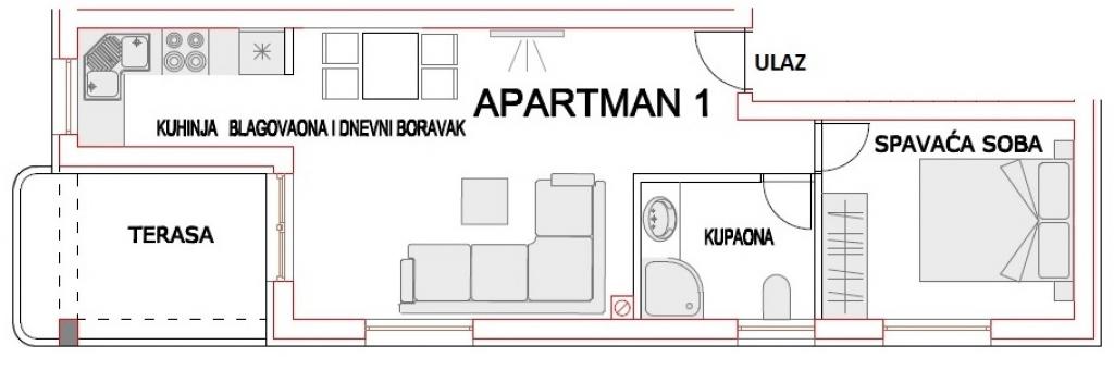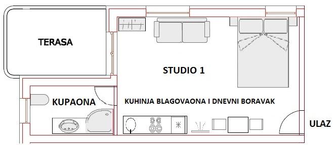 Le studio est propre et bien rangé. Tout ce dont j'avais besoin dans la cuisine était dans l'équipement. Très bons hôtes. Il est proche de la mer et du centre de Pag pour sortir le soir. Le studio est censé être un studio de 2 pièces, mais si quelqu'un y va avec un enfant, il peut également être réservé sans aucun problème. Je recommanderais fortement.