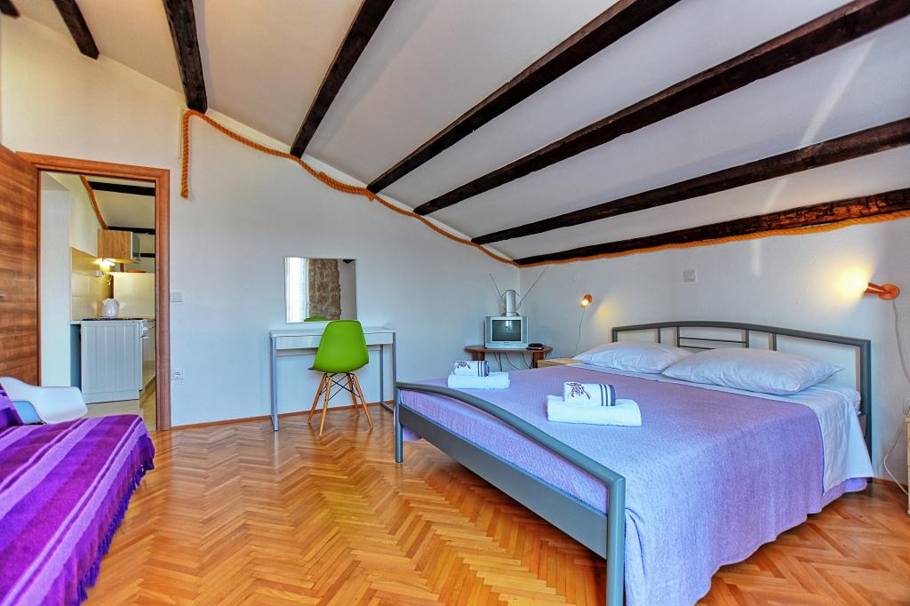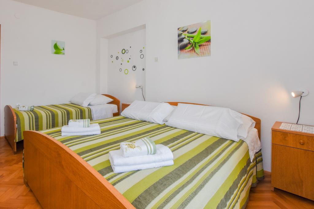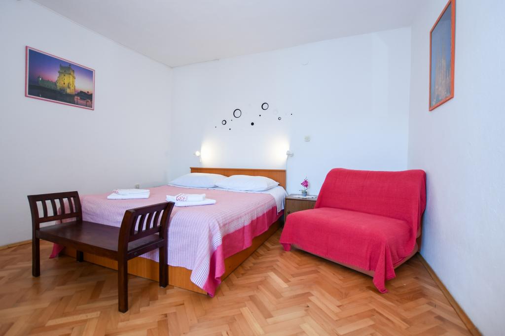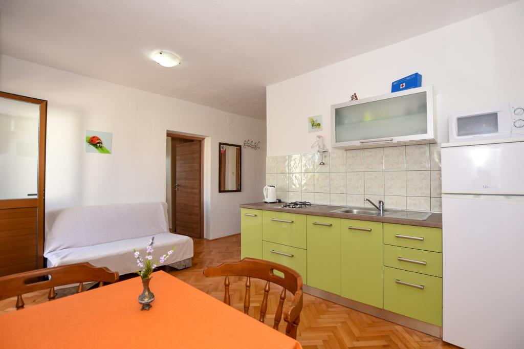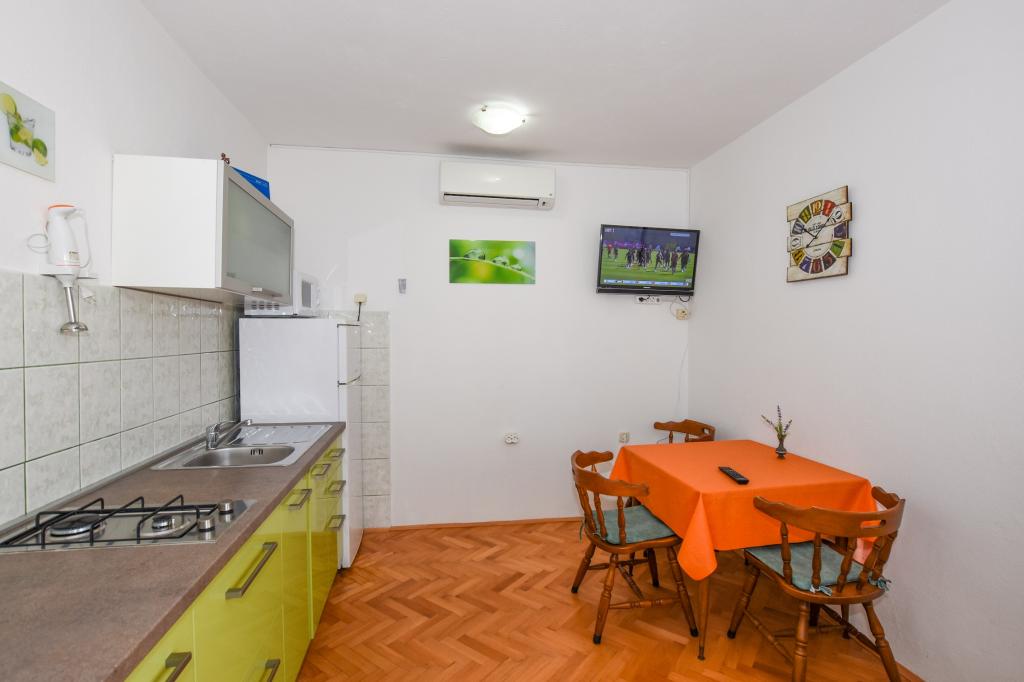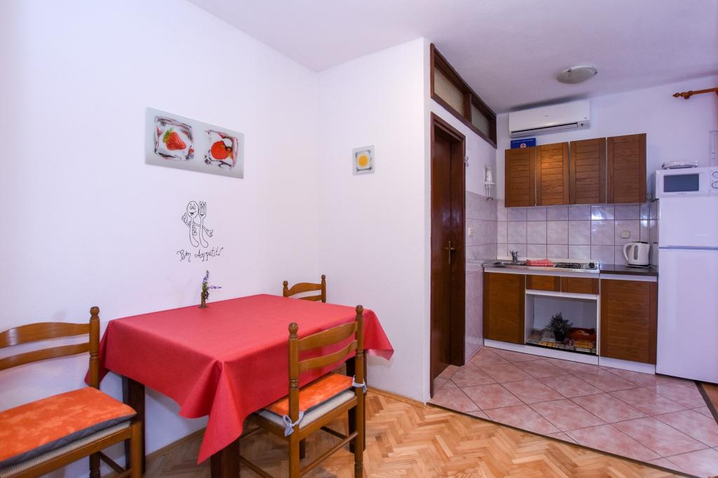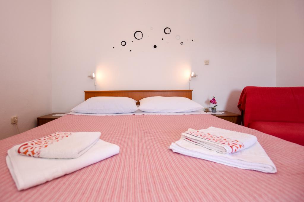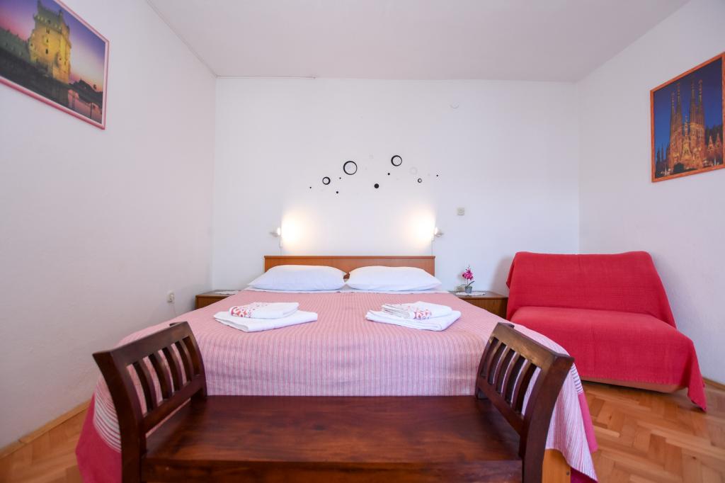 Très agréable, sympathique, serviable propriétaires. Très bon contact. Chambre - propre, bien entretenu, grand, très bien équipée (réfrigérateur, cuisinière, vaisselle, couverts, casseroles, sèche-cheveux, parasol sur la plage, les bienvenus draps propres odorants et serviettes). Belle vue depuis la terrasse et d'un balcon. Garanti une place de parking à environ 100 mètres de la petite plage Près de la maison. Belle ville, charmante. Cette zone a beaucoup d'endroits à explorer. Nous et les enfants étaient très heureux et ravi la Croatie. Nous vous recommandons!