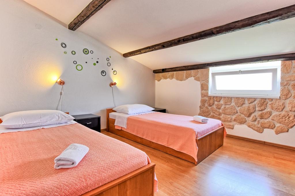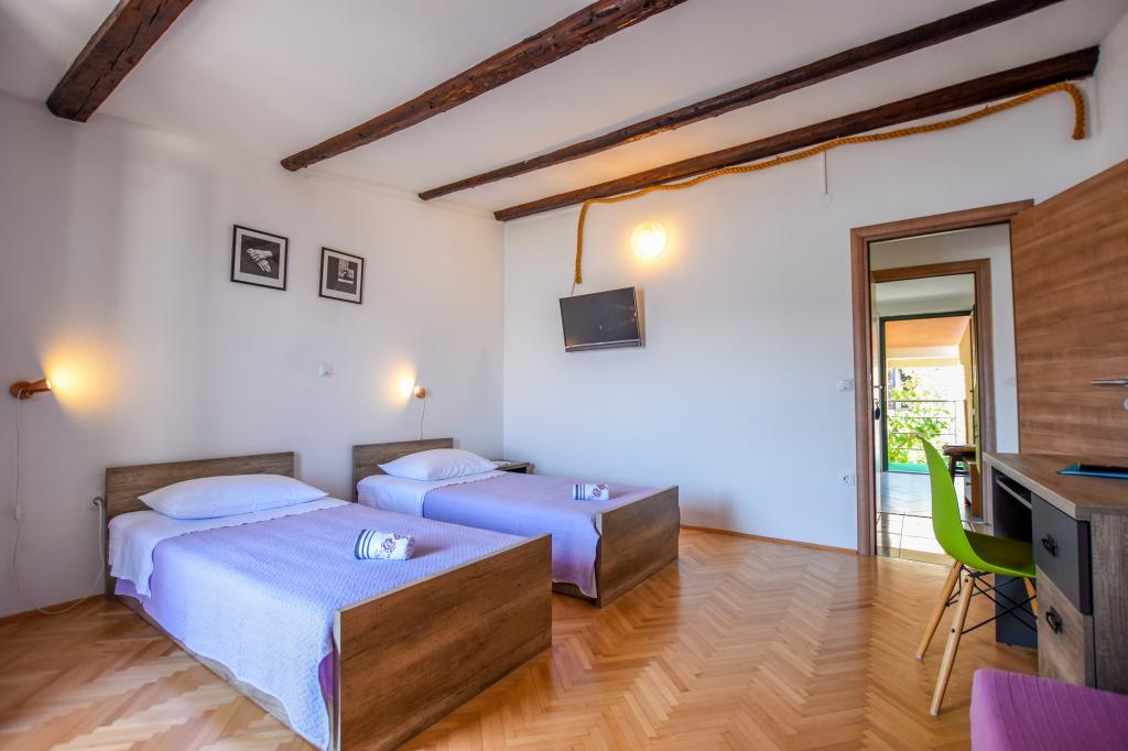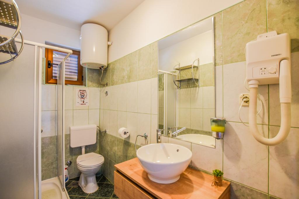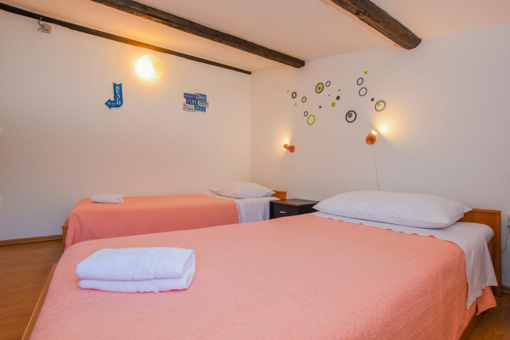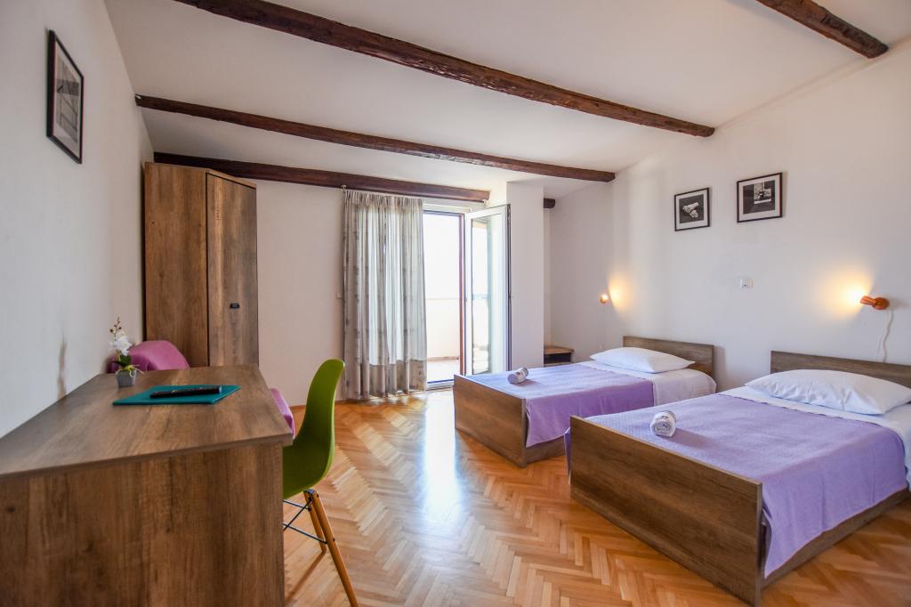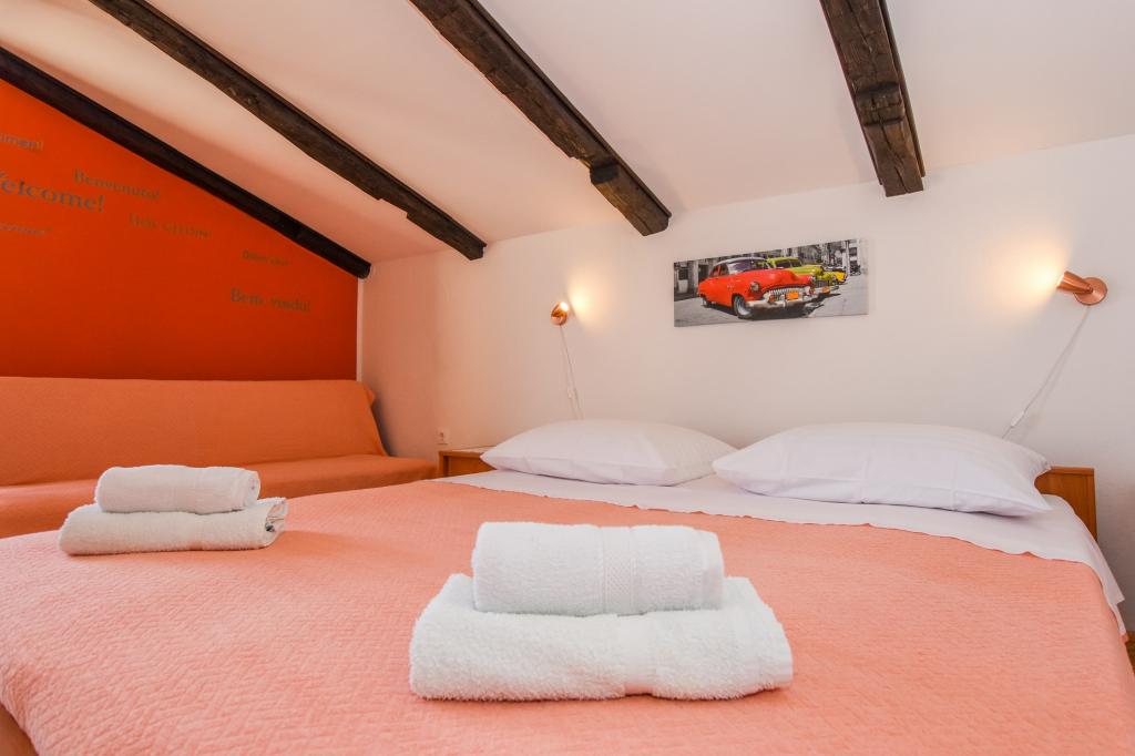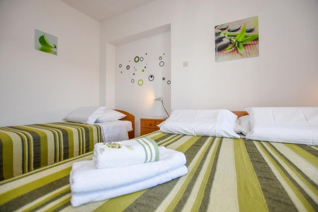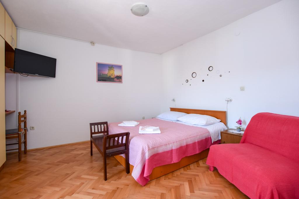 Très agréable, sympathique, serviable propriétaires. Très bon contact. Chambre - propre, bien entretenu, grand, très bien équipée (réfrigérateur, cuisinière, vaisselle, couverts, casseroles, sèche-cheveux, parasol sur la plage, les bienvenus draps propres odorants et serviettes). Belle vue depuis la terrasse et d'un balcon. Garanti une place de parking à environ 100 mètres de la petite plage Près de la maison. Belle ville, charmante. Cette zone a beaucoup d'endroits à explorer. Nous et les enfants étaient très heureux et ravi la Croatie. Nous vous recommandons!