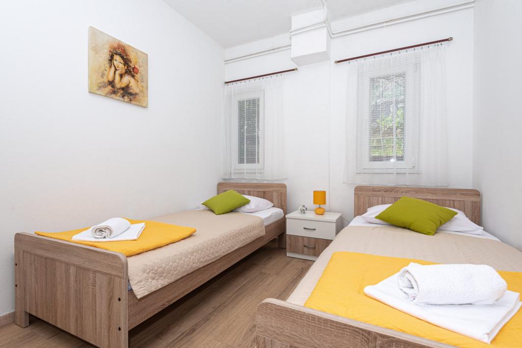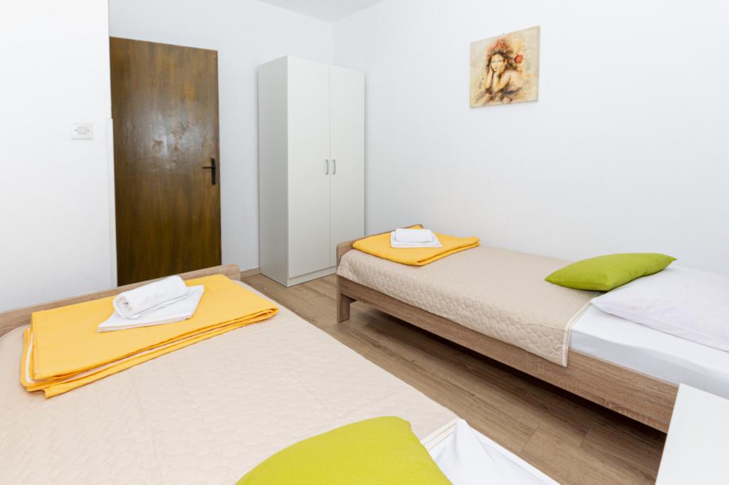 Les appartements sont situés dans la ville de Pag, dans la région de Lokunja, à seulement 200 mètres de la mer et à 300 mètres de la plage principale. Il faut moins de 10 minutes à pied pour rejoindre le centre-ville où se trouvent des magasins, un bureau de poste, des cafés et des bars. À seulement 25 km de Novalja-Zrć et à 50 km de Zadar. Cette maison dispose de 4 logements. Les propriétaires de la maison (Ivo et Jelica) habitent dans l'un d'entre eux et sont à votre disposition. Un appartement est situé au premier étage de la maison et dispose d'un balcon avec une belle vue sur la mer. Il y a deux autres appartements avec terrasses au rez-de-chaussée de la maison. La maison dispose d'une grande cour, d'un jardin et d'une place de parking sécurisée, ainsi que de la possibilité de faire des grillades. Accueillir.