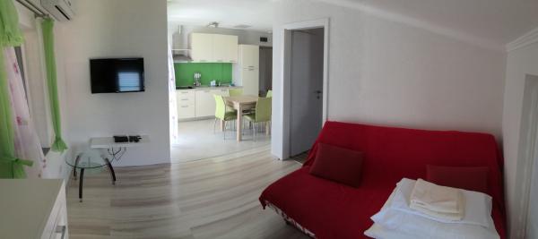 Nous avons été autorisés à passer deux semaines très agréables à la Vila Luna. Notre appartement avait tout ce dont vous aviez besoin et s'il manquait quelque chose, Marin a immédiatement aidé. Le meilleur propriétaire que nous connaissions jusqu'à présent. Très sympathique et serviable. Notre appartement avait une magnifique terrasse avec vue sur la mer. Nous avons passé de très bonnes soirées avec nos amis. La plage est accessible en quelques mètres, mais c'est définitivement une plage de galets et de pierres. Il y a un petit snack-bar et une boulangerie à proximité. Il faut environ 20 minutes à pied pour rejoindre la belle ville de Pag, qui vaut vraiment le détour. Merci beaucoup